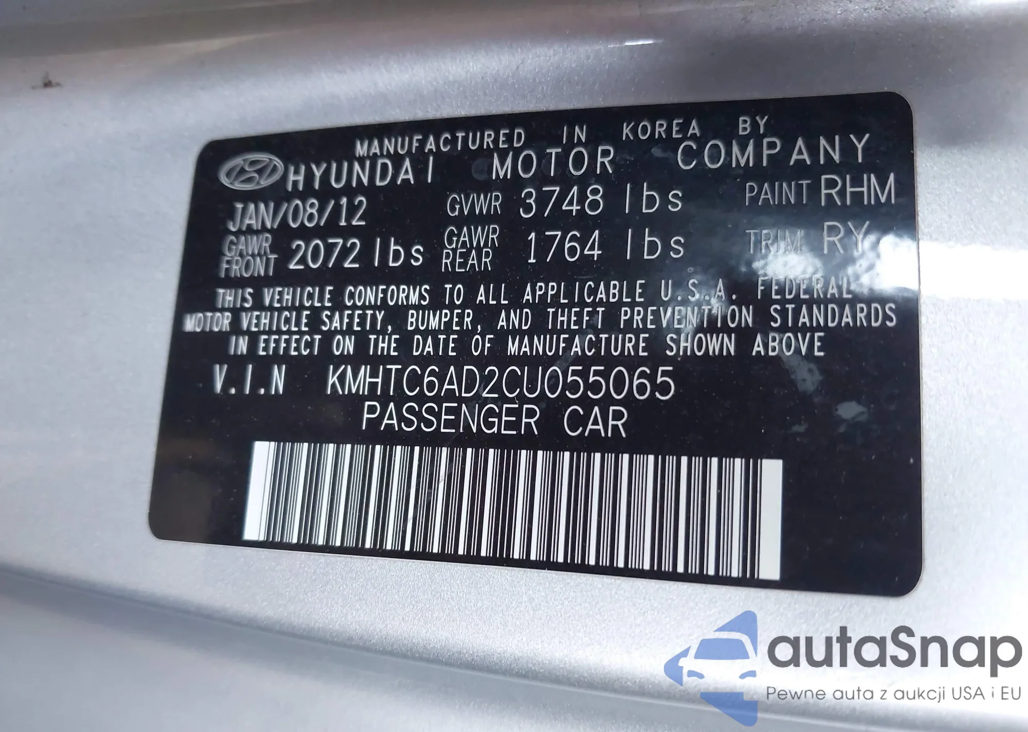 VIN: KMHTC6AD2CU055065