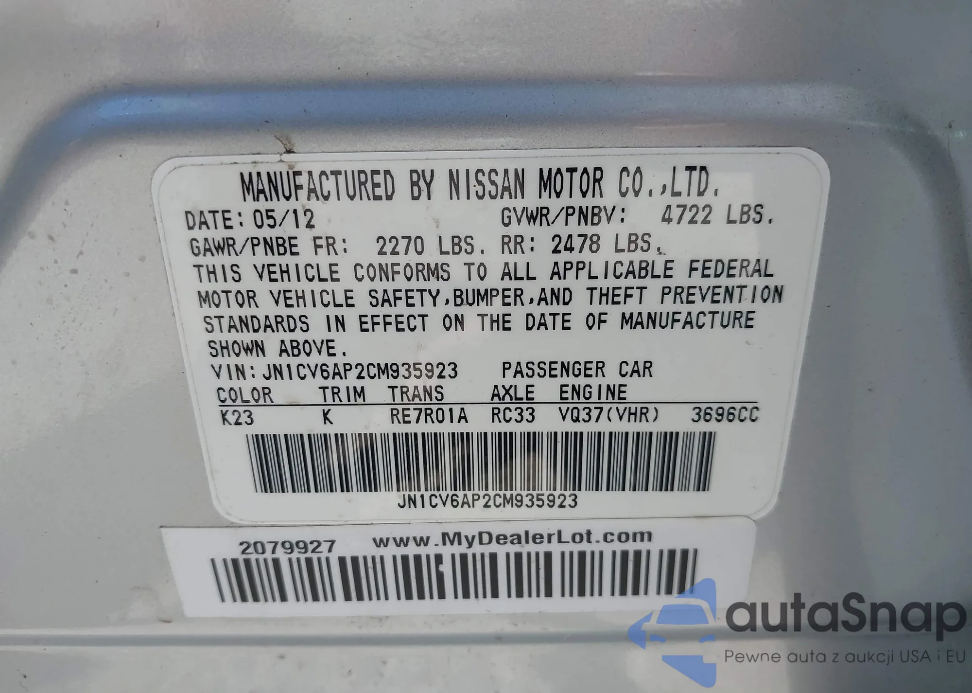 • VIN: JN1CV6AP2CM935923