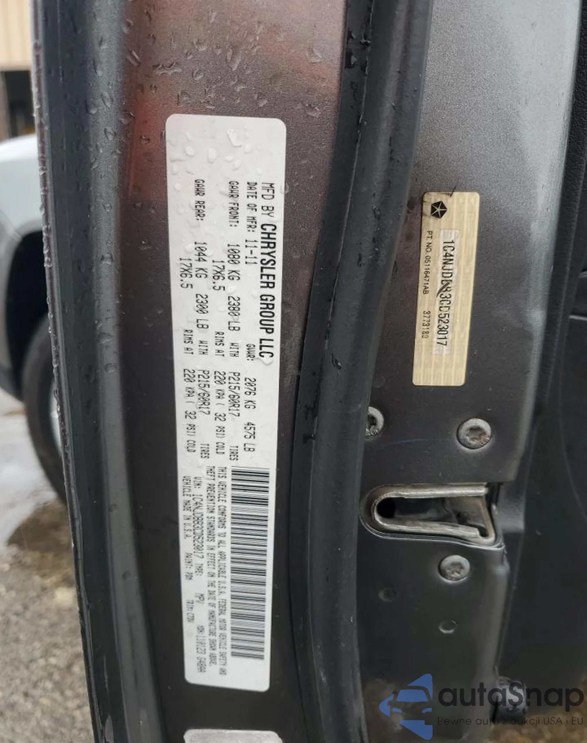 Автомобиль Jeep Compass 2012 (VIN 1C4NJDBB3CD523017) имеет документы, препятствующие регистрации. Могут возникнуть сложности при экспорте и регистрации. Обратитесь к экспертам AutaSnap для поиска альтернатив.