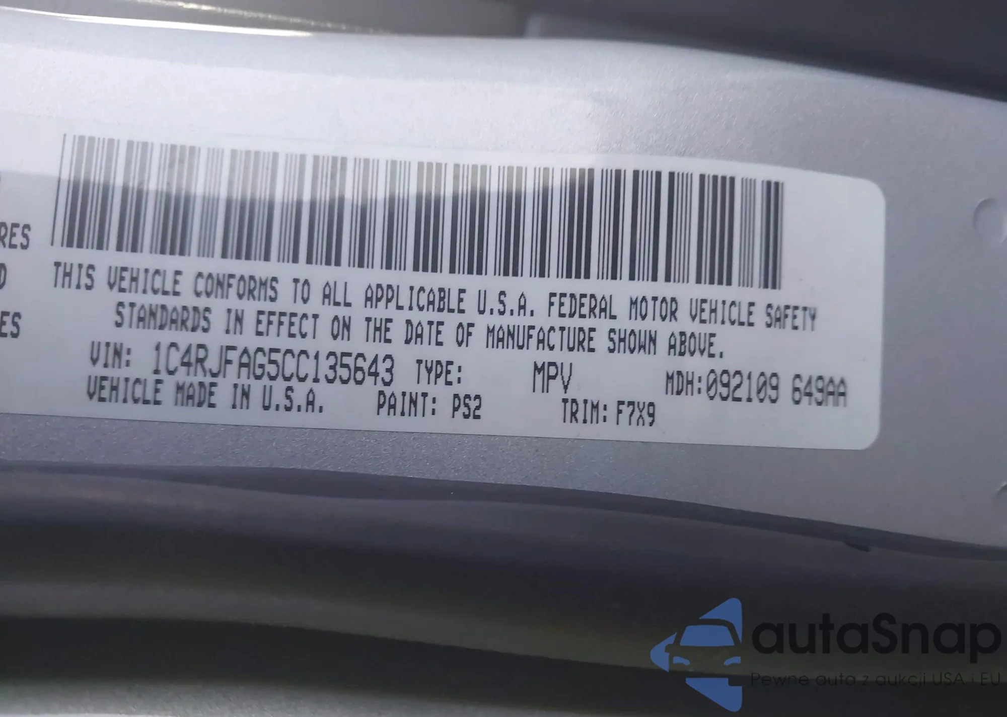VIN: 1C4RJFAG5CC135643