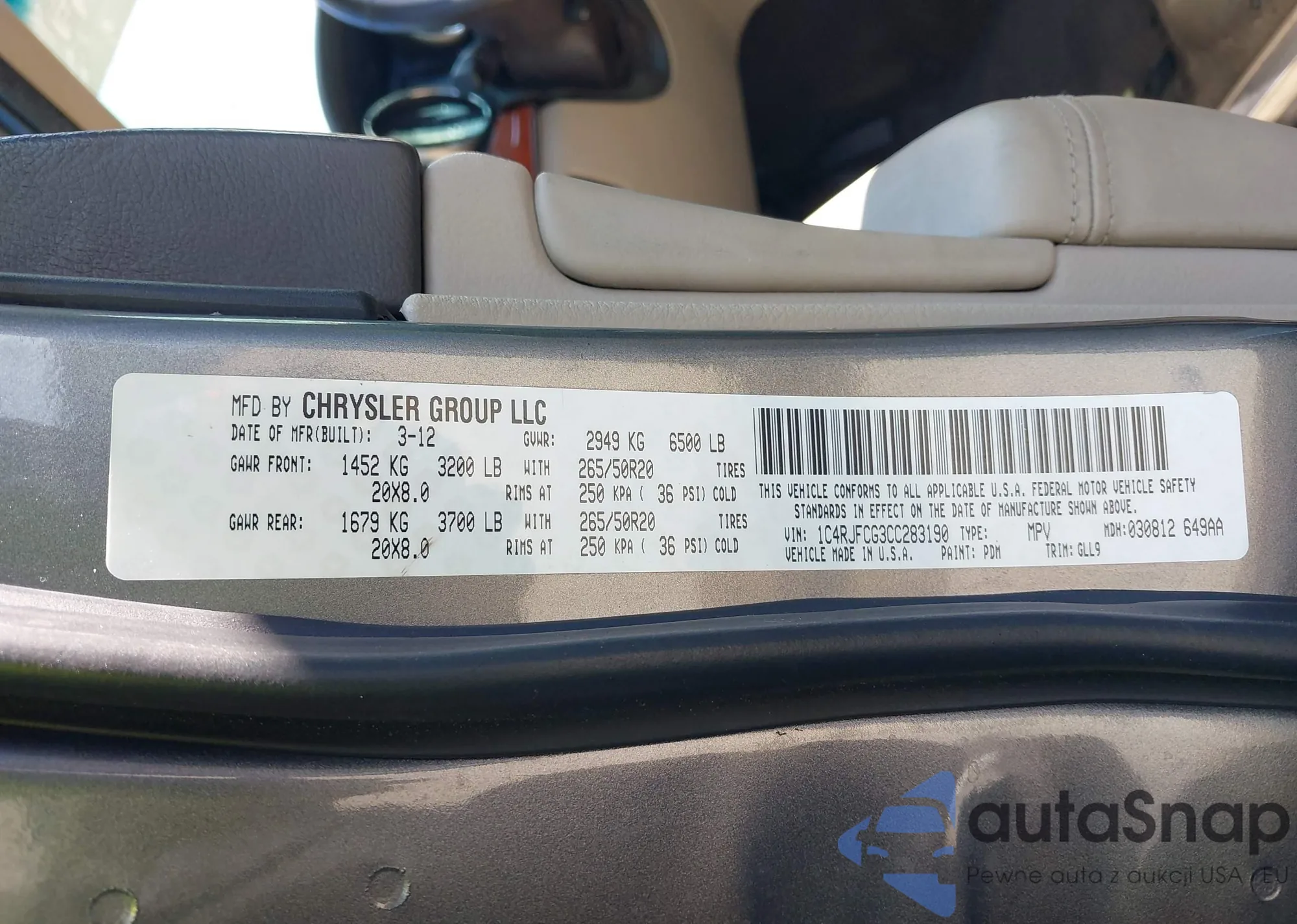 • VIN: 1C4RJFCG3CC283190
