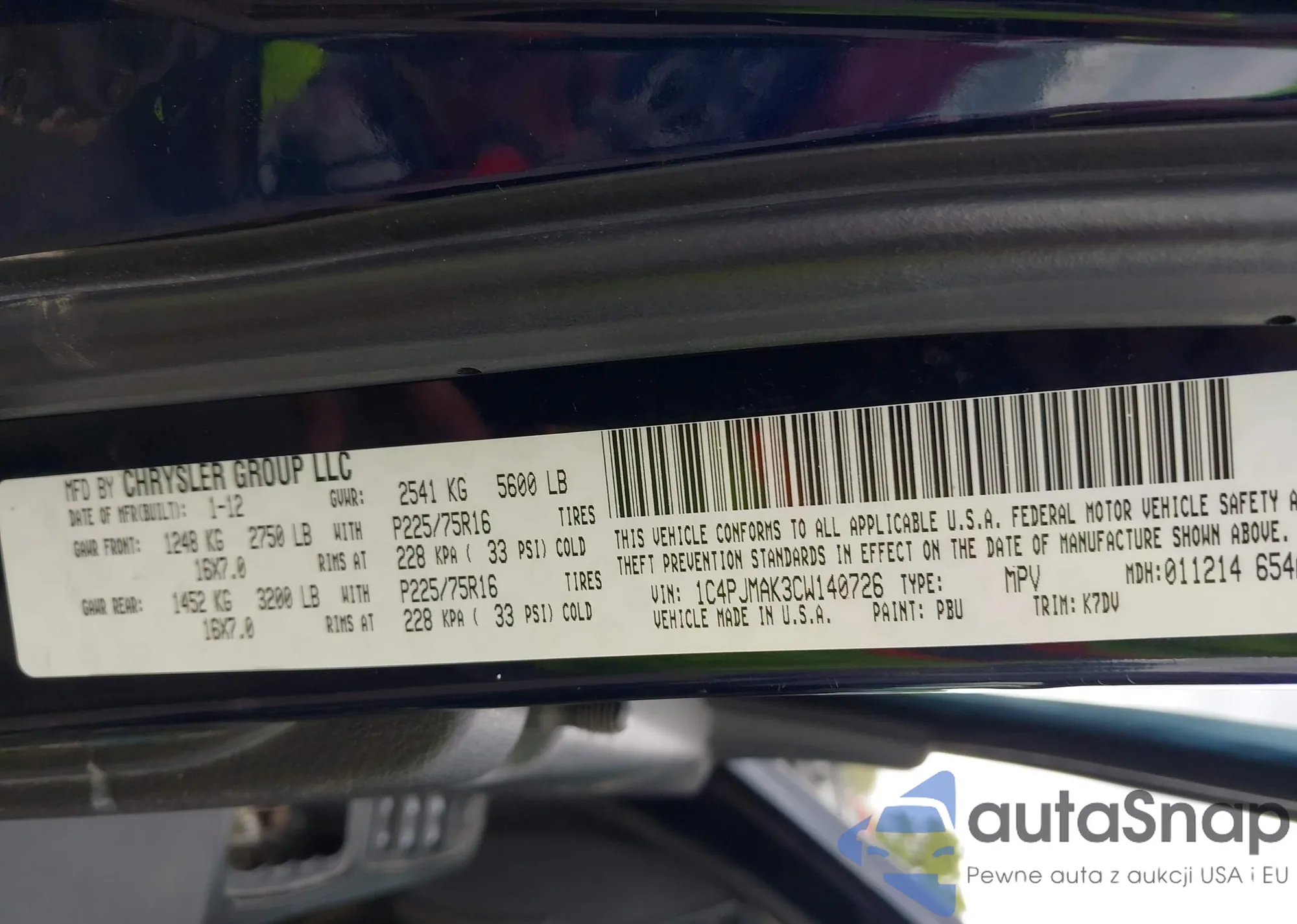 VIN: 1C4PJMAK3CW140726