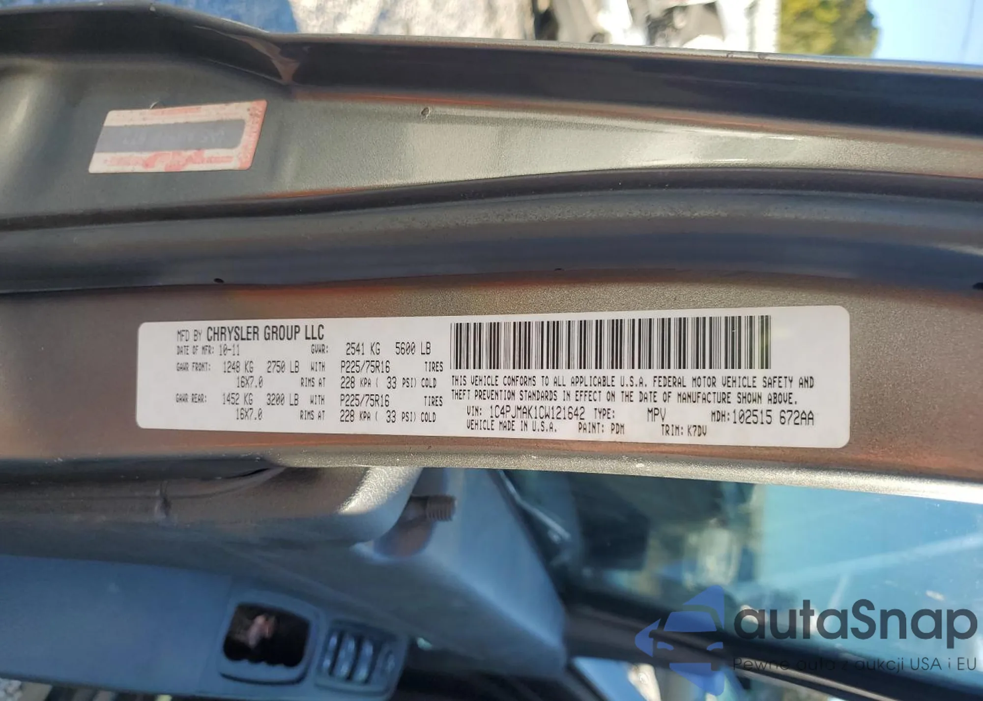 VIN: 1C4PJMAK1CW121642