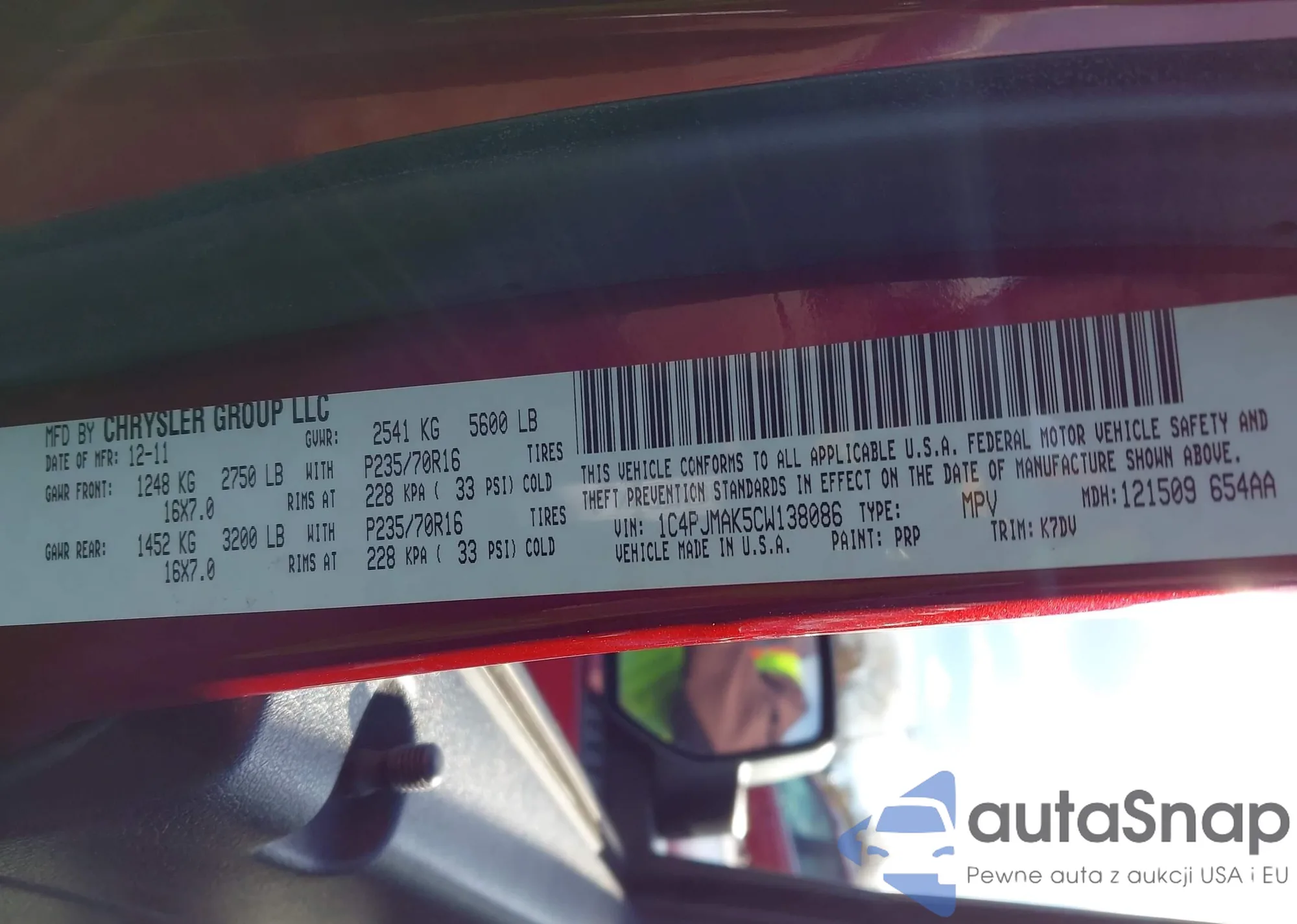 VIN: 1C4PJMAK5CW138086