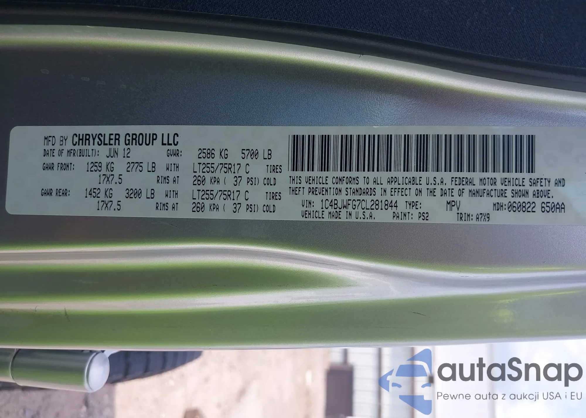 • VIN: 1C4BJWFG7CL281844