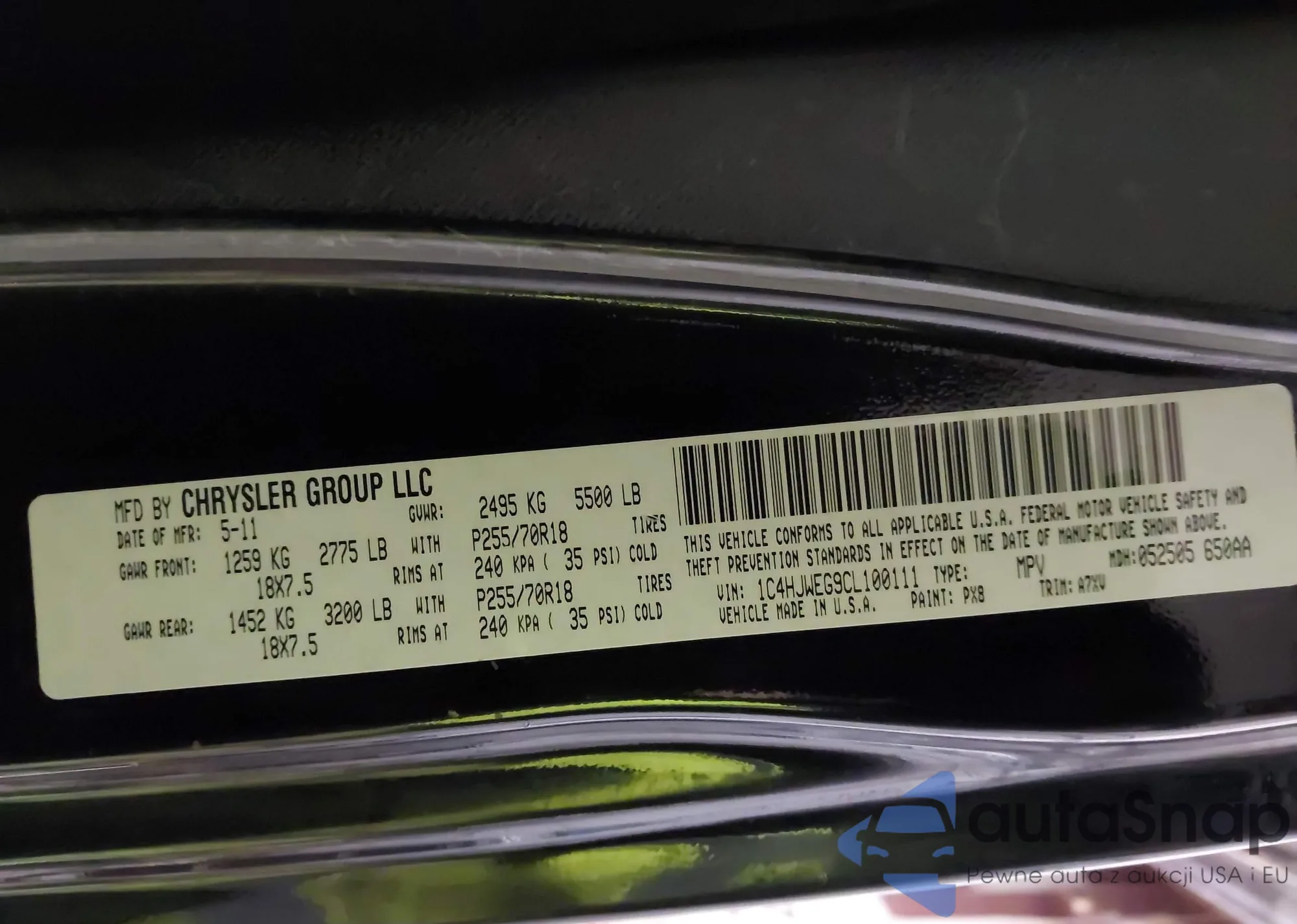 VIN: 1C4HJWEG9CL100111