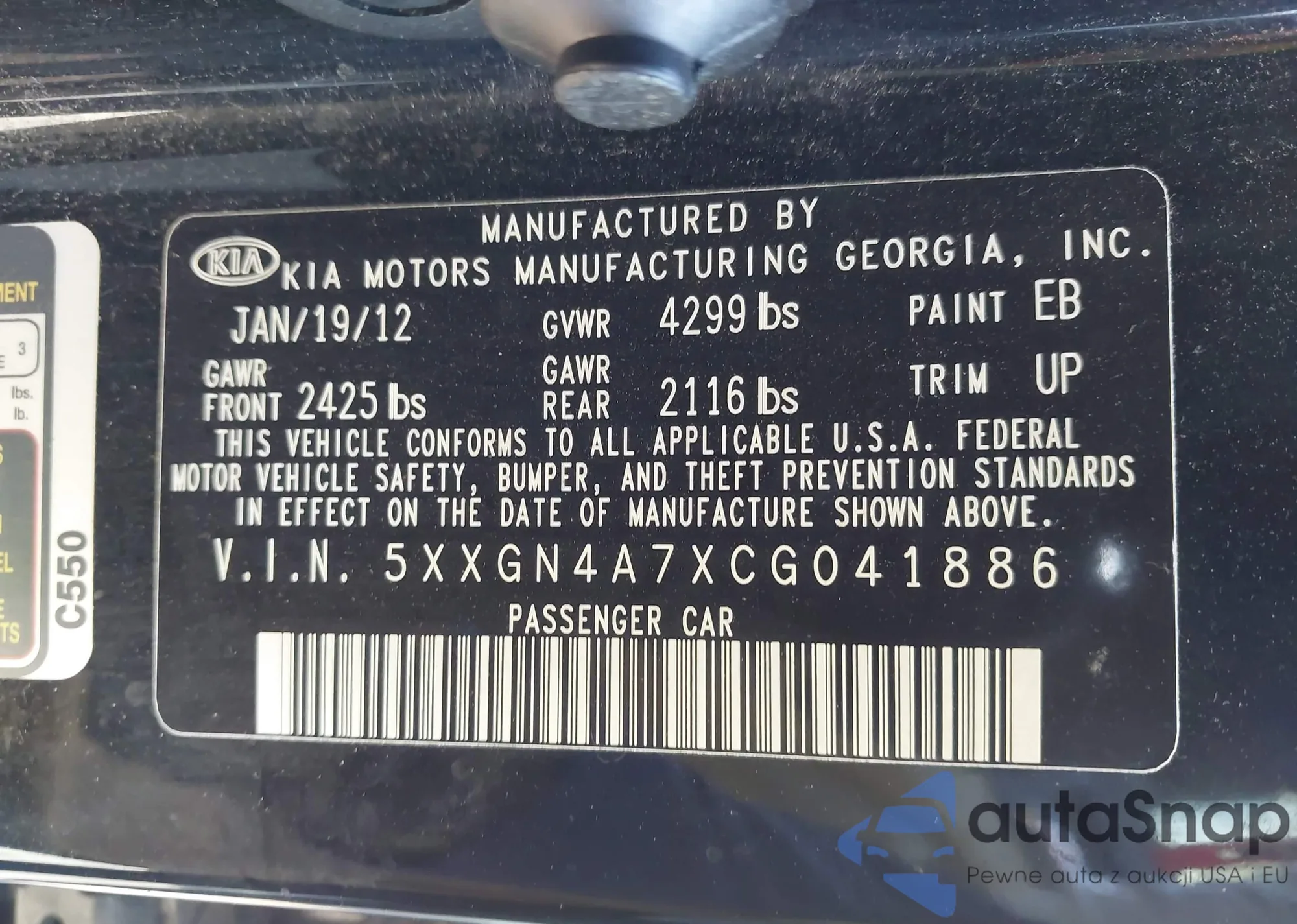 • VIN: 5XXGN4A7XCG041886