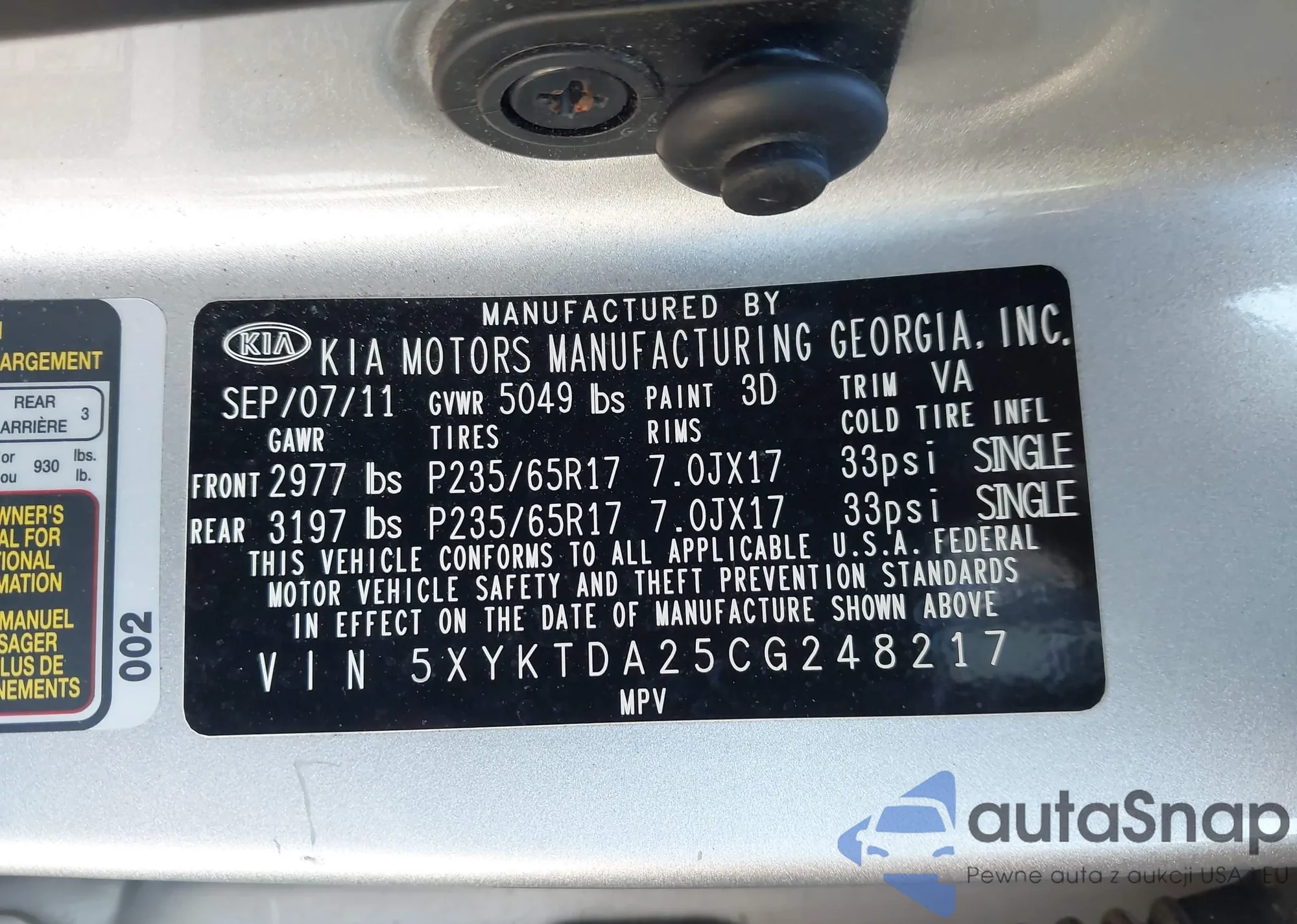 Автомобиль Kia Sorento 2012 (VIN 5XYKTDA25CG248217) ранее не участвовал в торгах. Документы чистые, пробег соответствует или ниже среднего по рынку. Продаётся страховой компанией — рекомендуем покупку. Доставка в порт займет около 6–8 недель.
