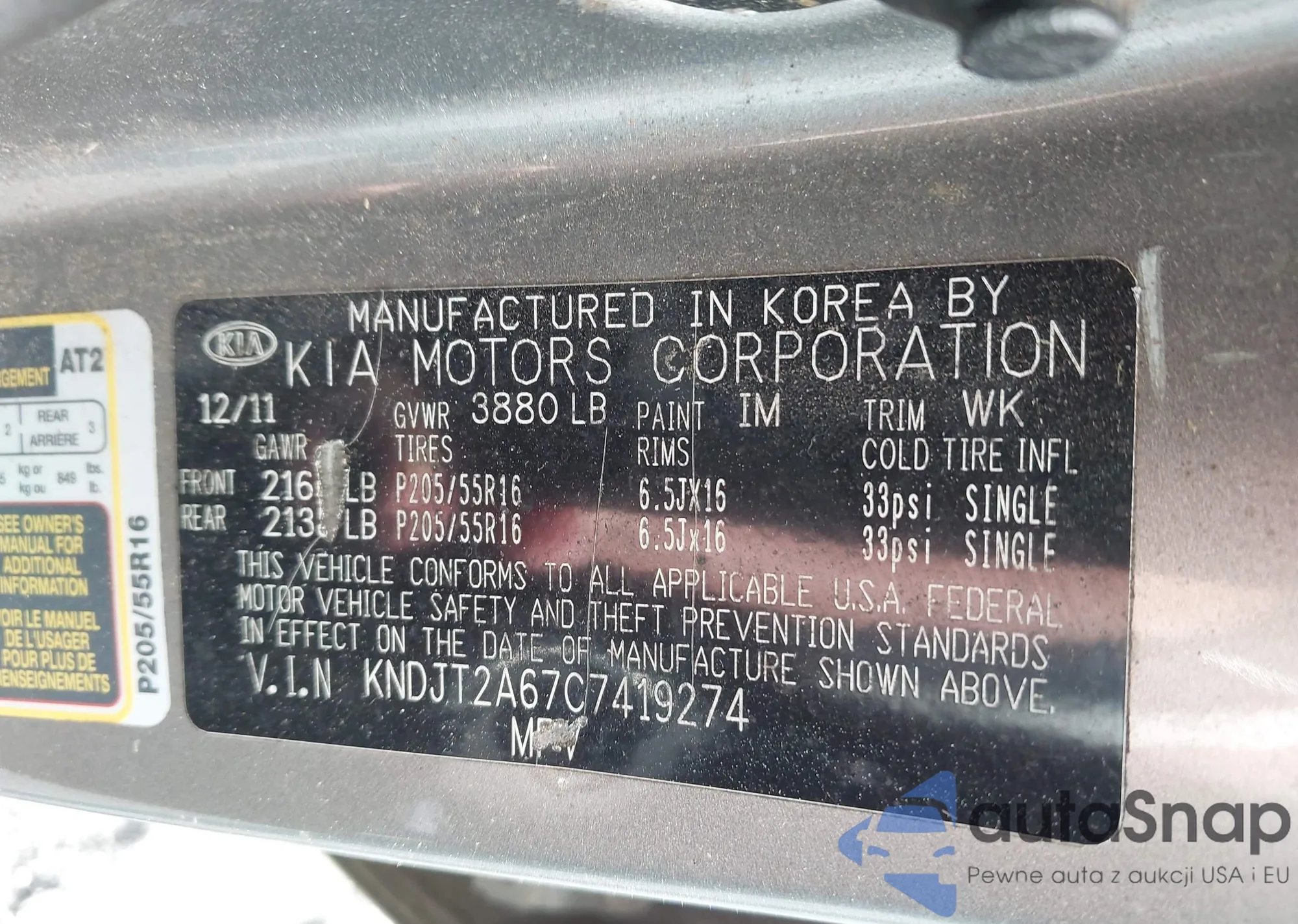 VIN: KNDJT2A67C7419274