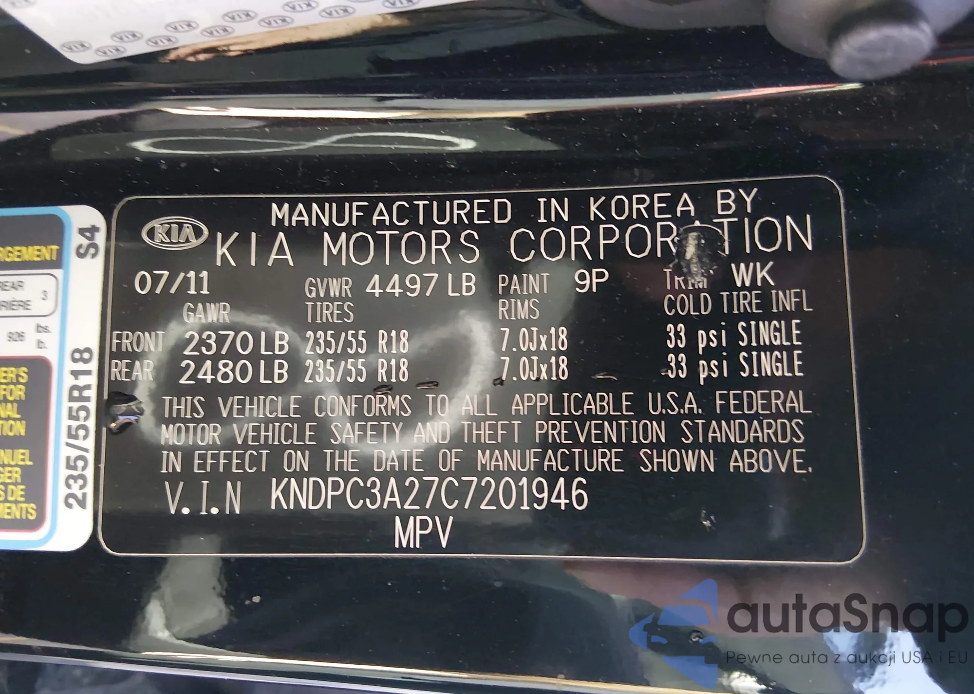 • VIN: KNDPC3A27C7201946