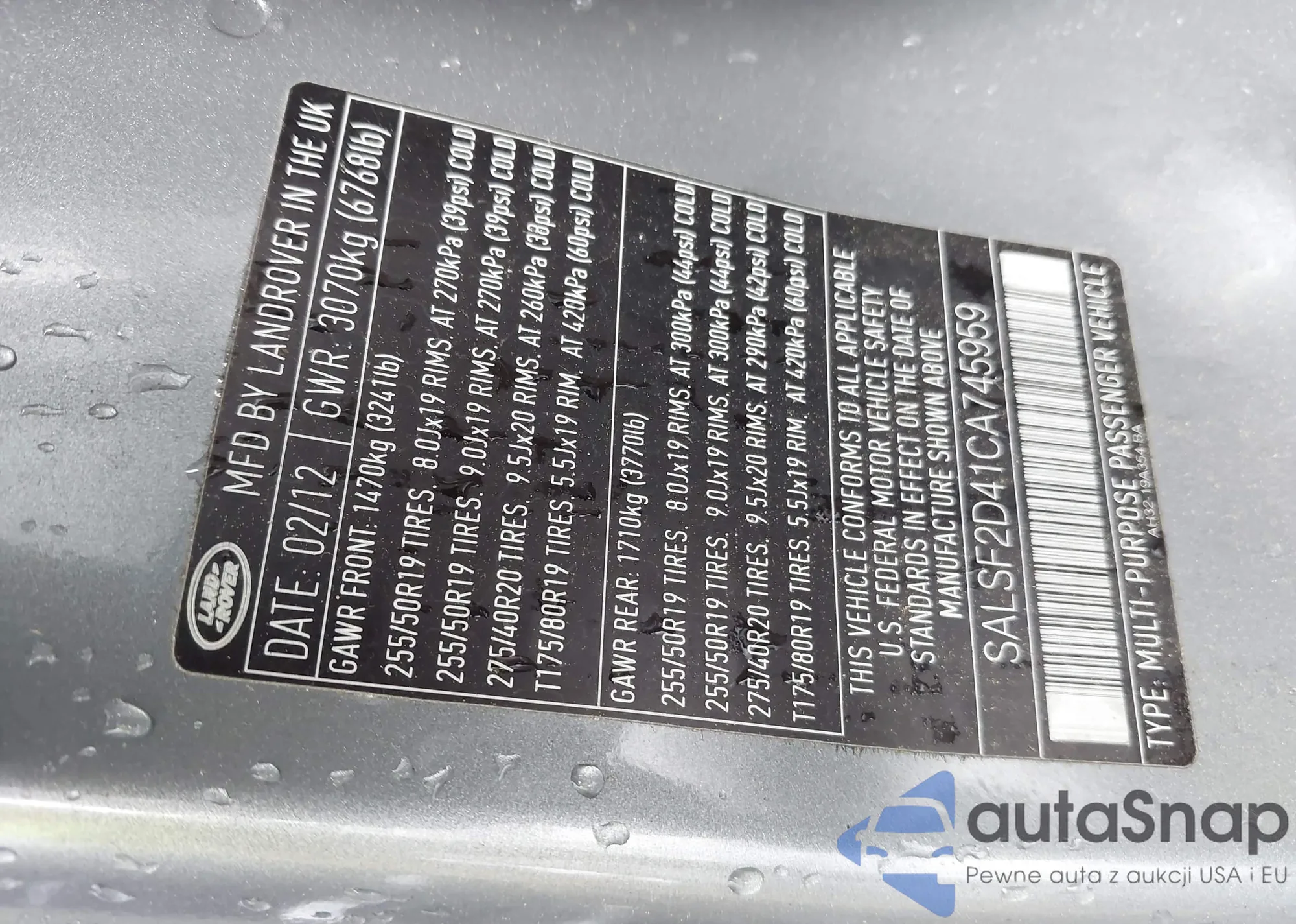 VIN: SALSF2D41CA745959