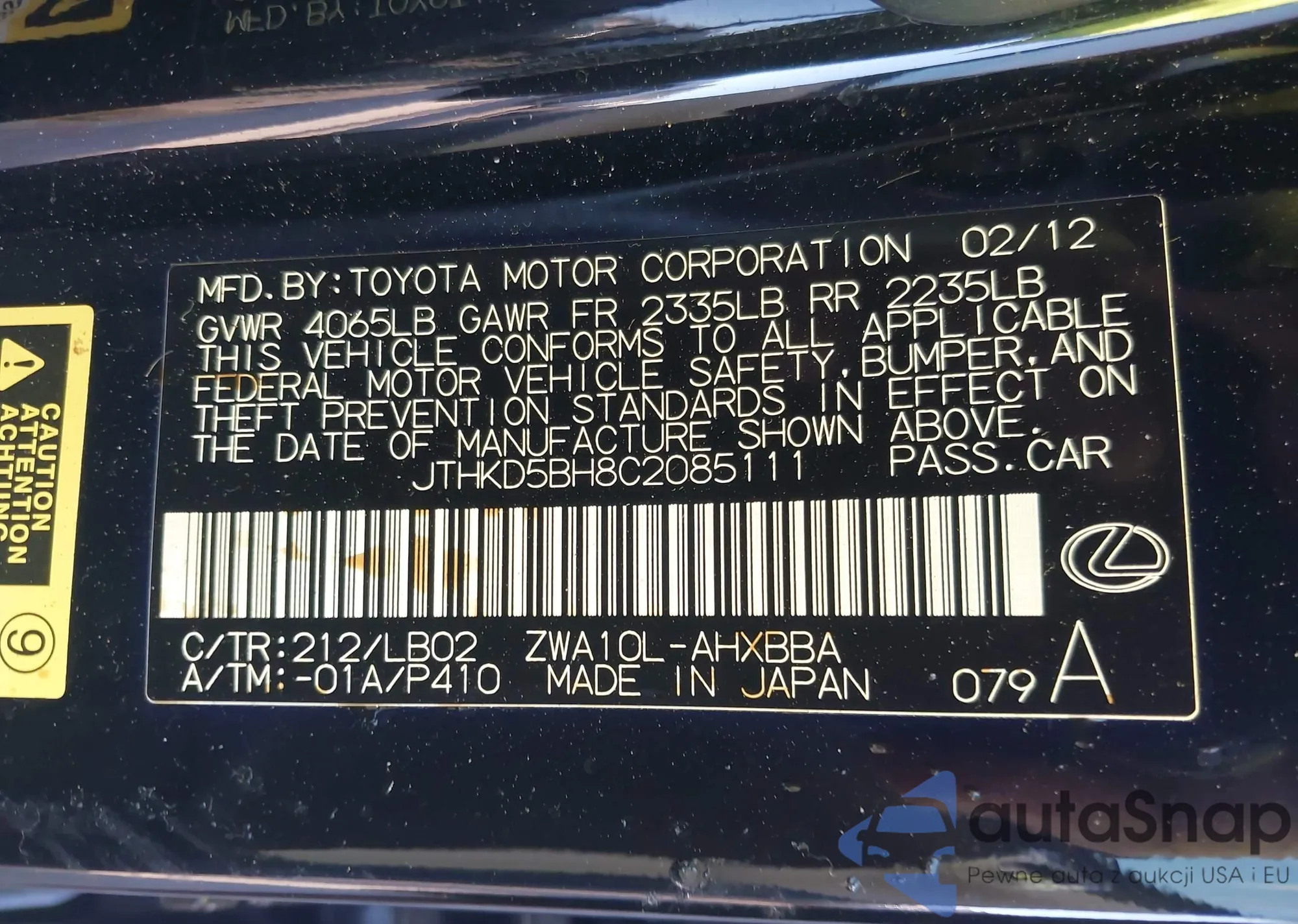 JTHKD5BH8C2085111 IAAI