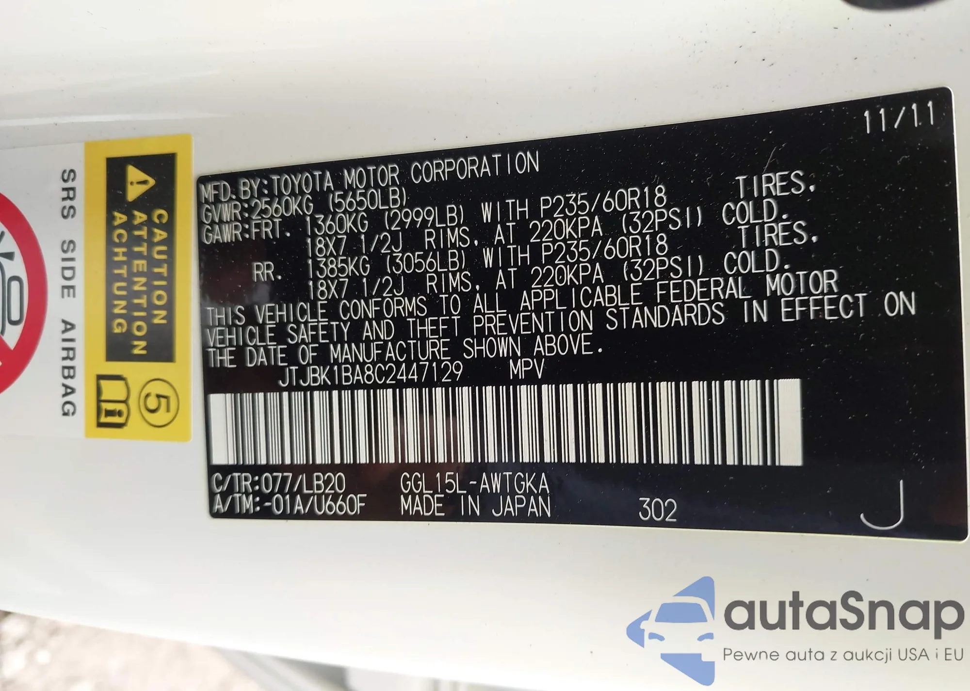 VIN: JTJBK1BA8C2447129