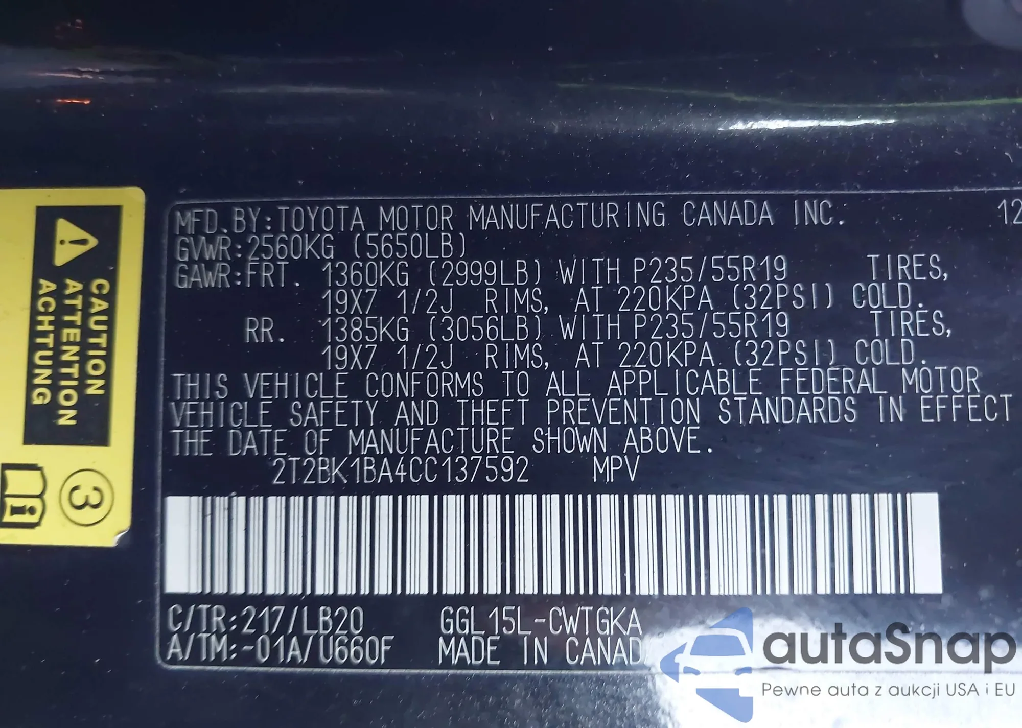 VIN: 2T2BK1BA4CC137592