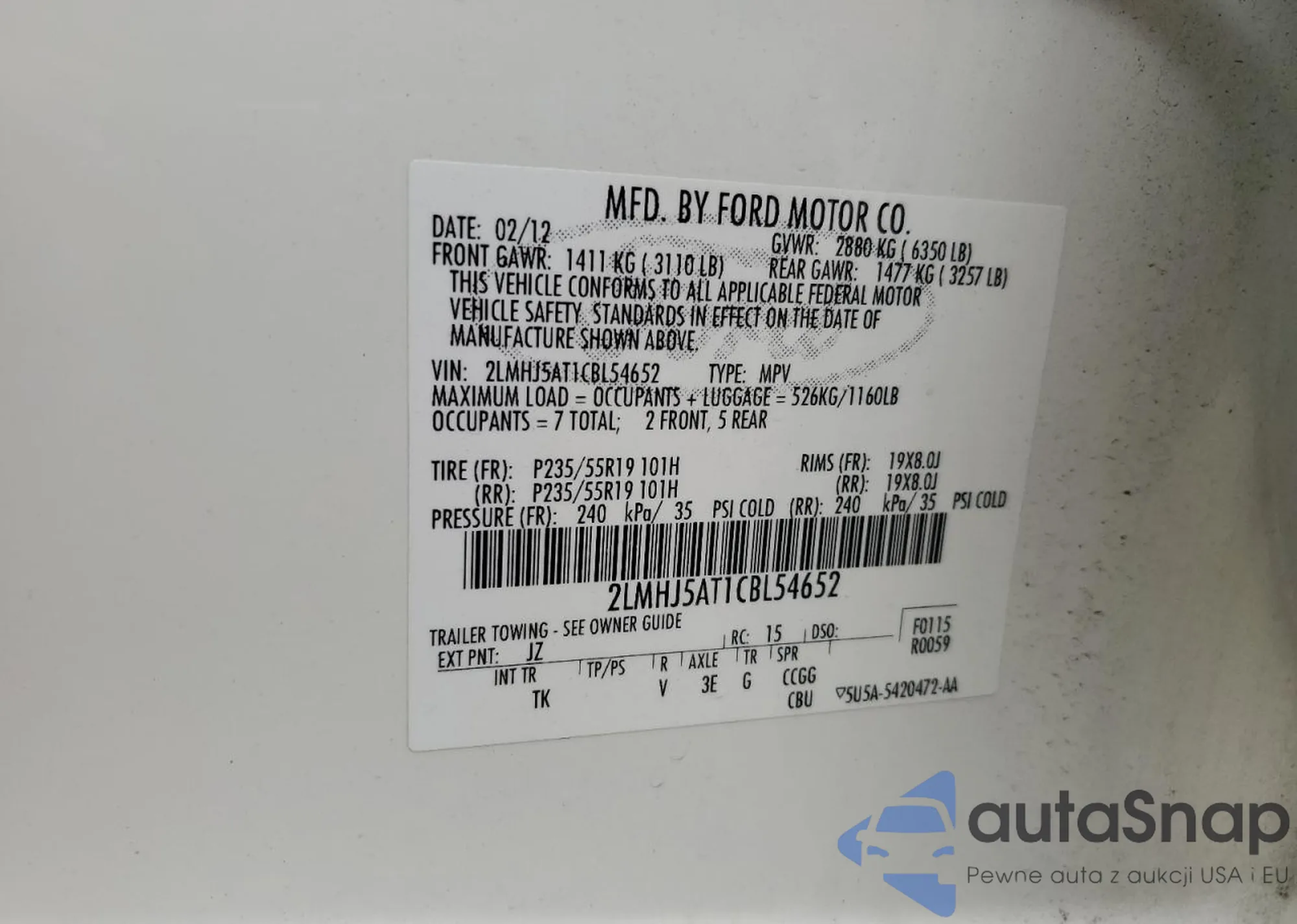 VIN: 2LMHJ5AT1CBL54652