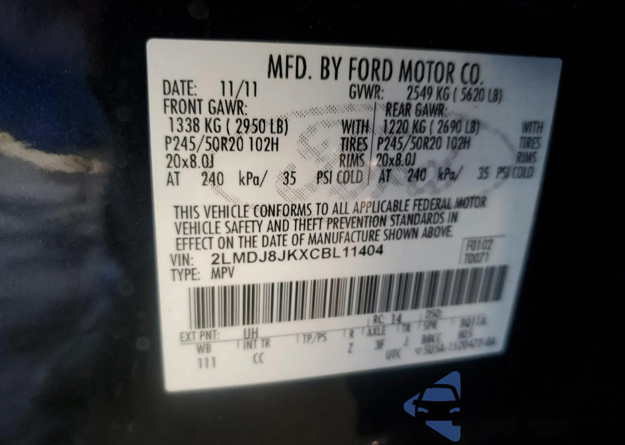 VIN: 2LMDJ8JKXCBL11404