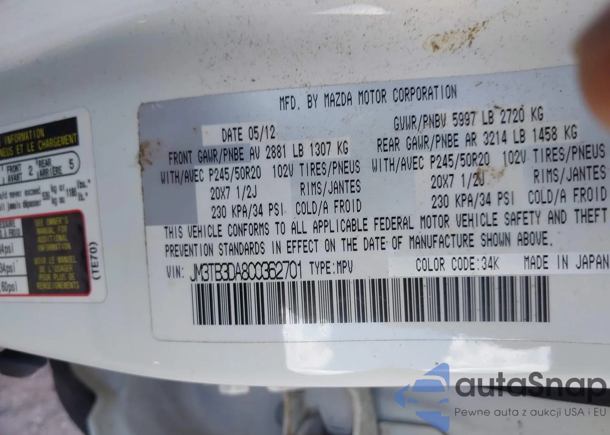 VIN: JM3TB3DA8C0362701