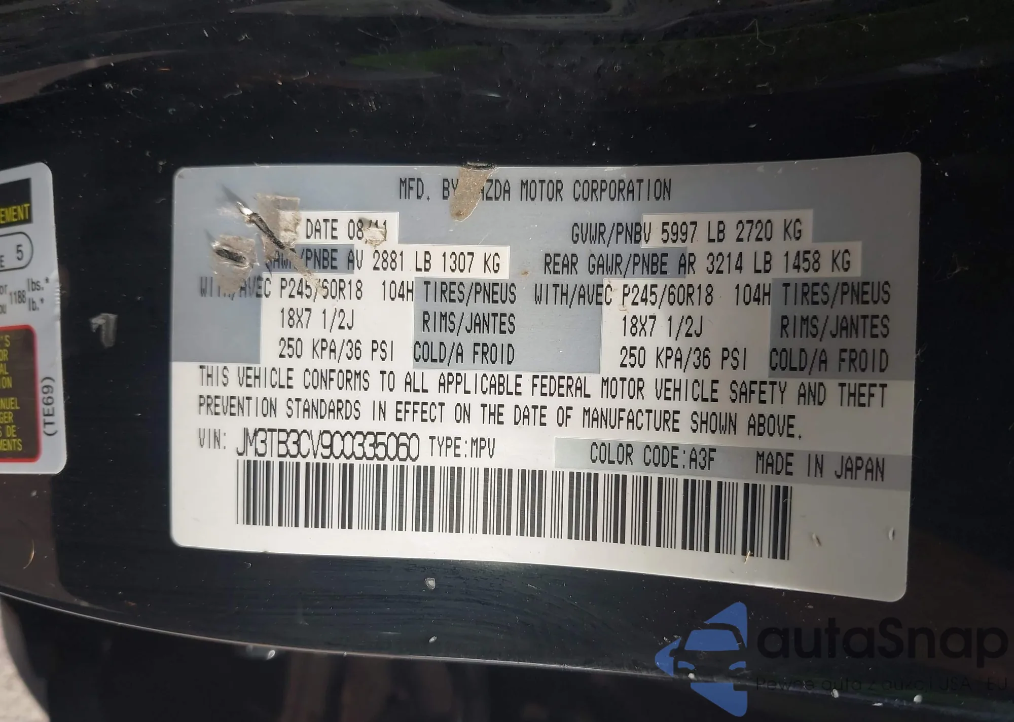 Автомобиль Mazda CX-9 2012 (VIN JM3TB3CV9C0335060) ранее не участвовал в торгах. Документы чистые, пробег соответствует или ниже среднего по рынку. Продаётся страховой компанией — рекомендуем покупку. Доставка в порт займет около 6–8 недель.