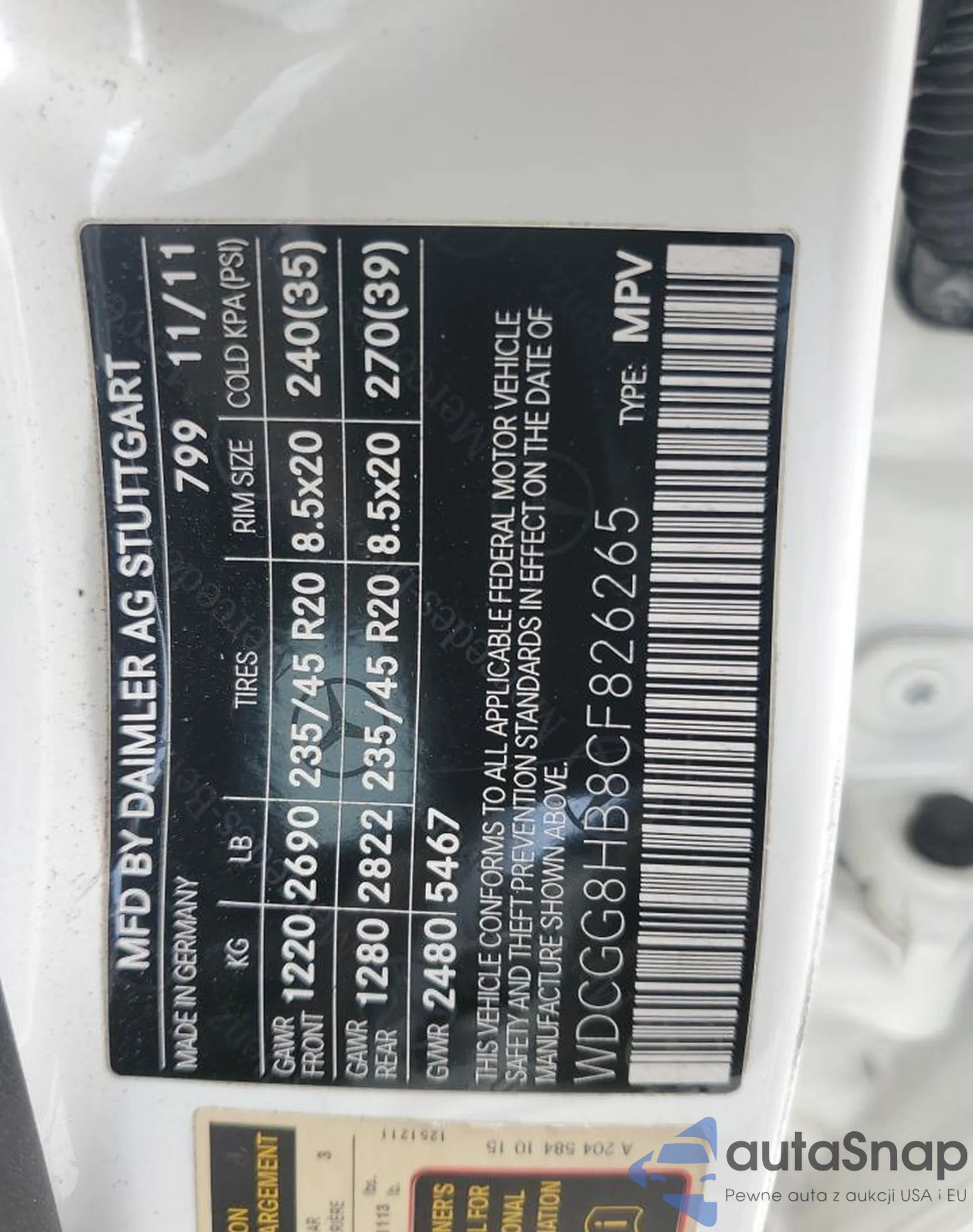 VIN: WDCGG8HB8CF826265