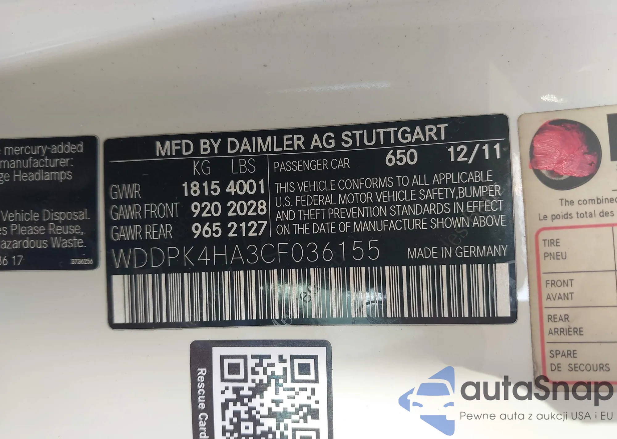 VIN: WDDPK4HA3CF036155