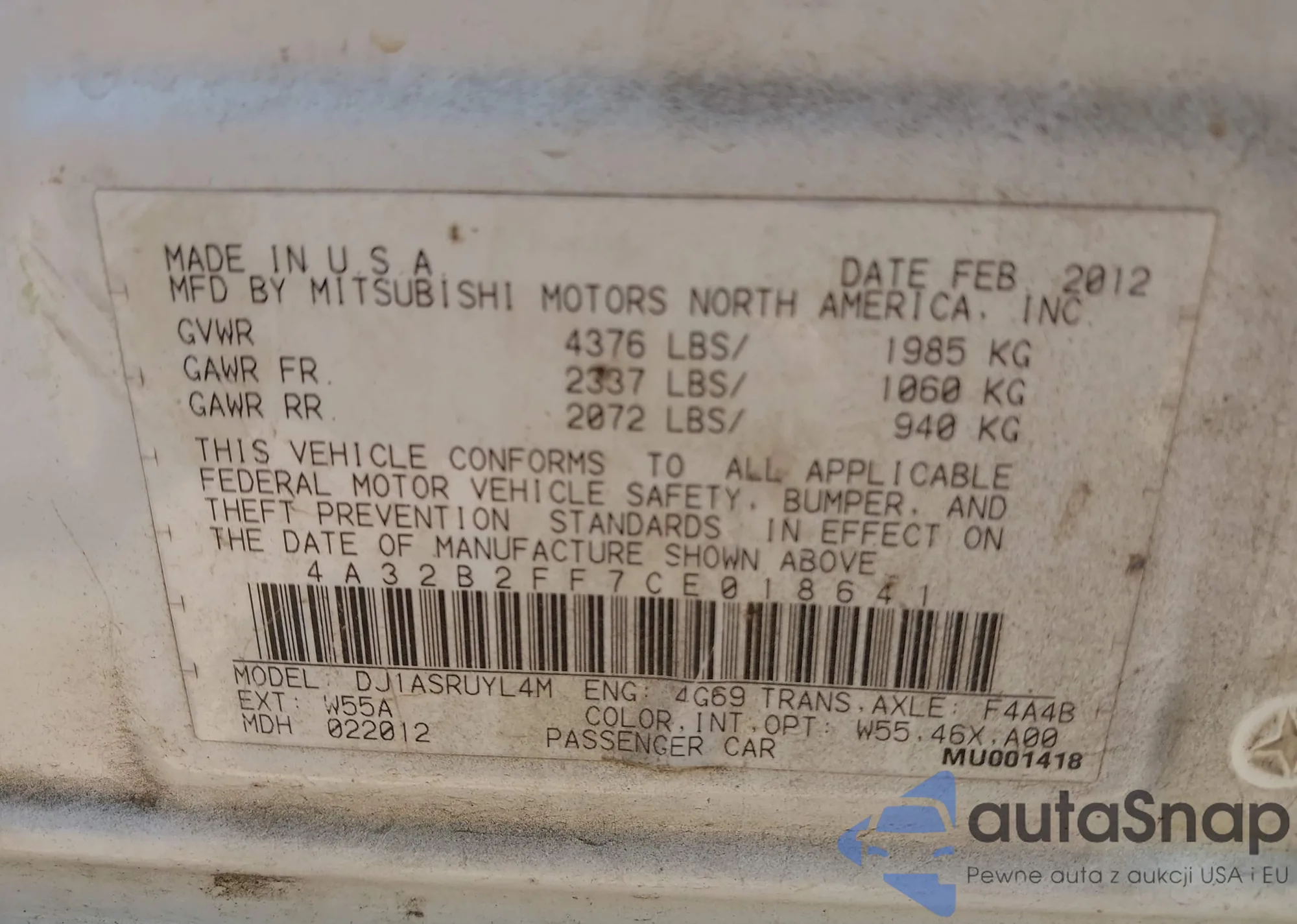 VIN: 4A32B2FF7CE018641