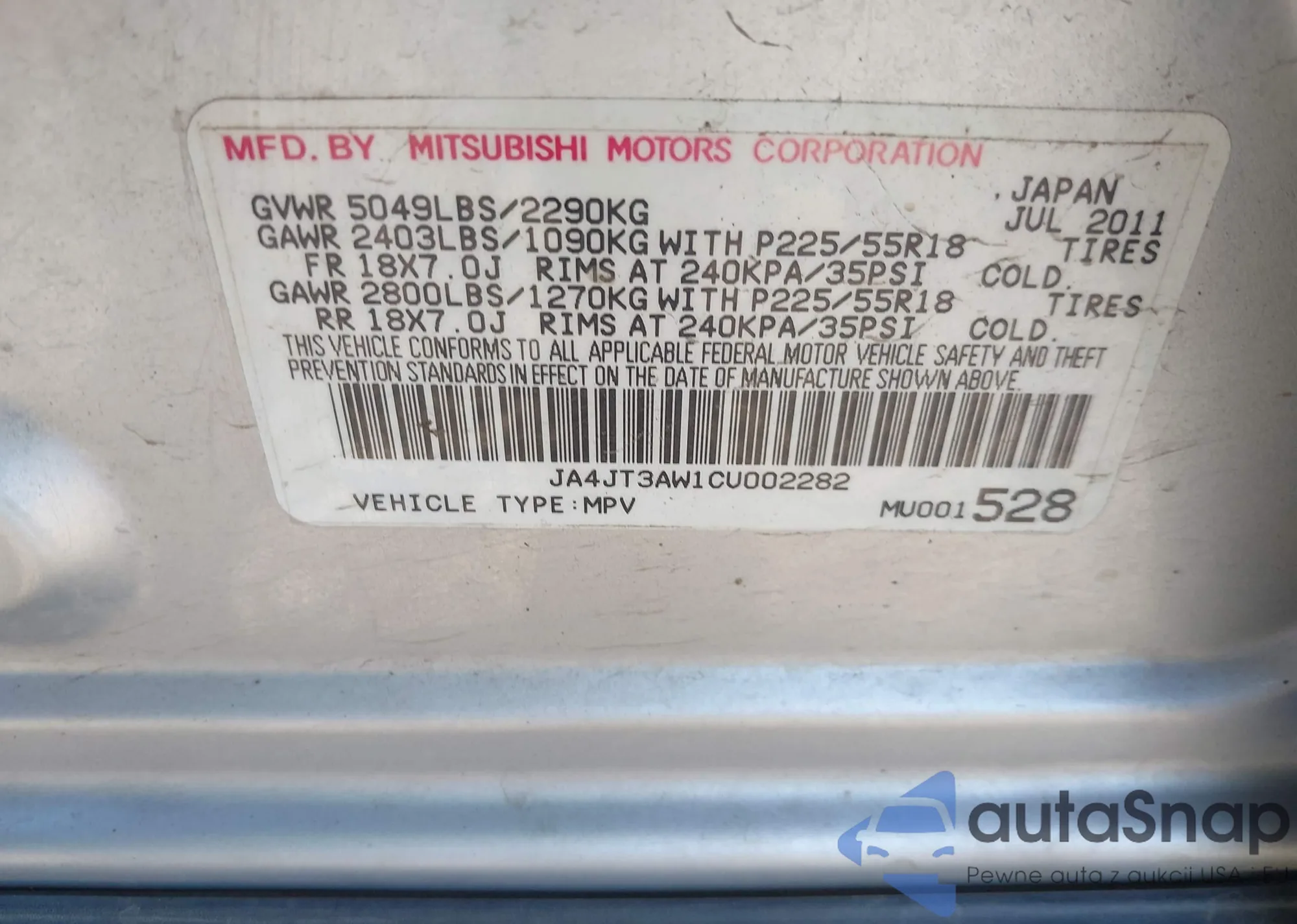 VIN: JA4JT3AW1CU002282