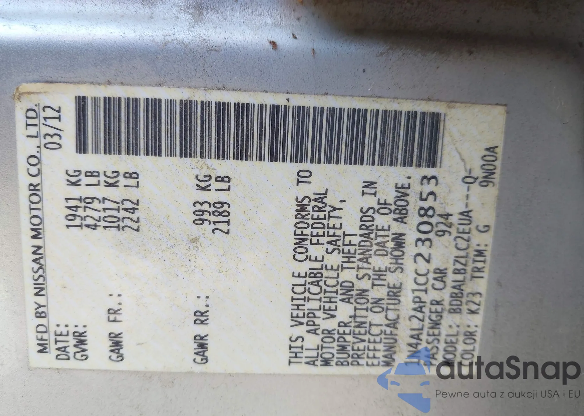 VIN: 1N4AL2AP1CC230853