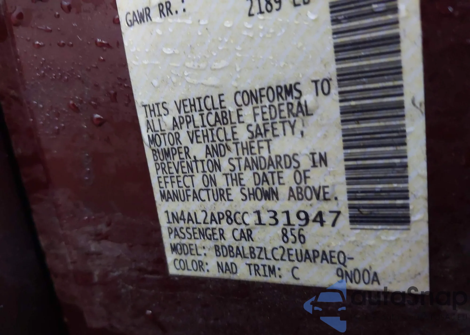 VIN: 1N4AL2AP8CC131947