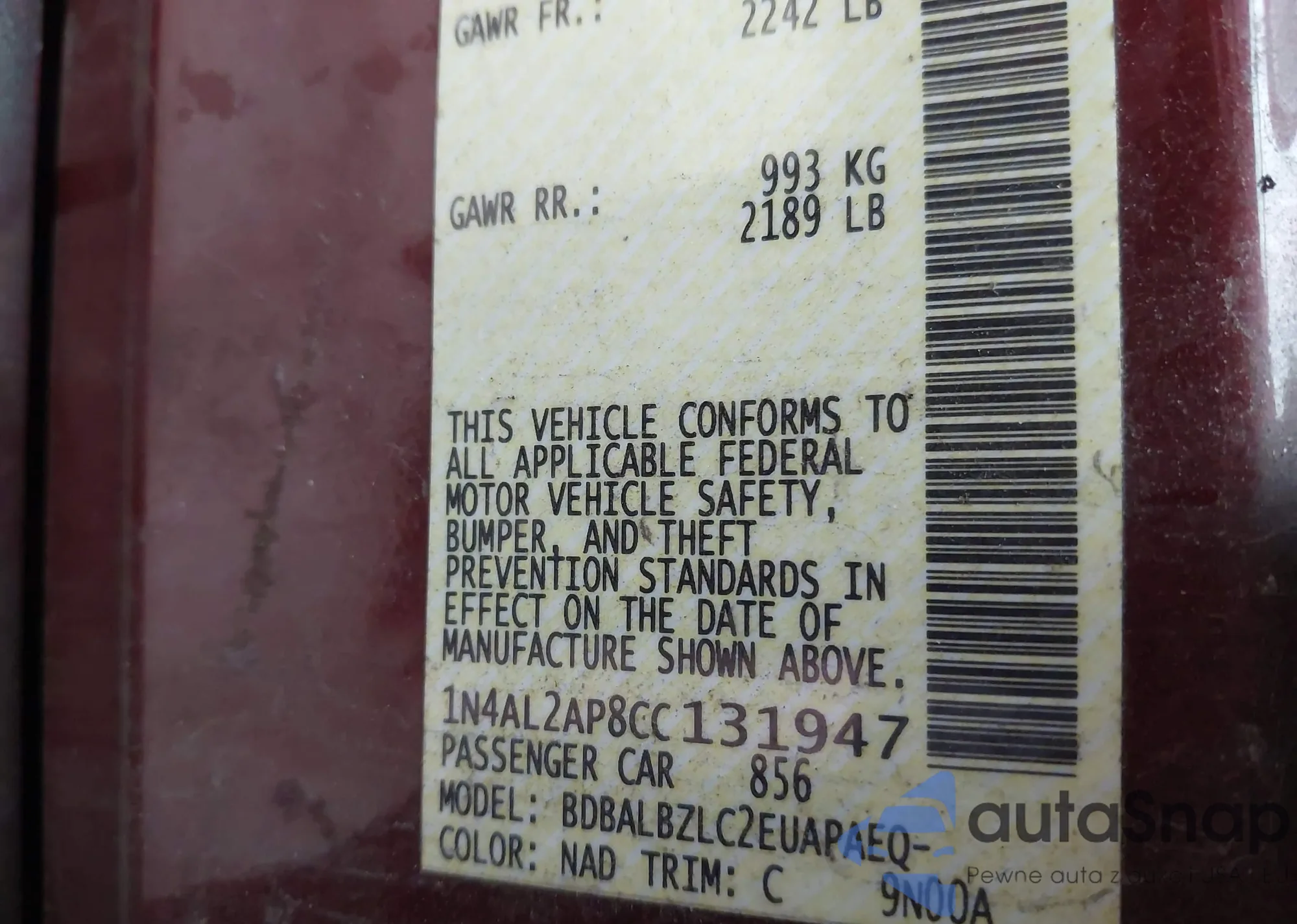VIN: 1N4AL2AP8CC131947