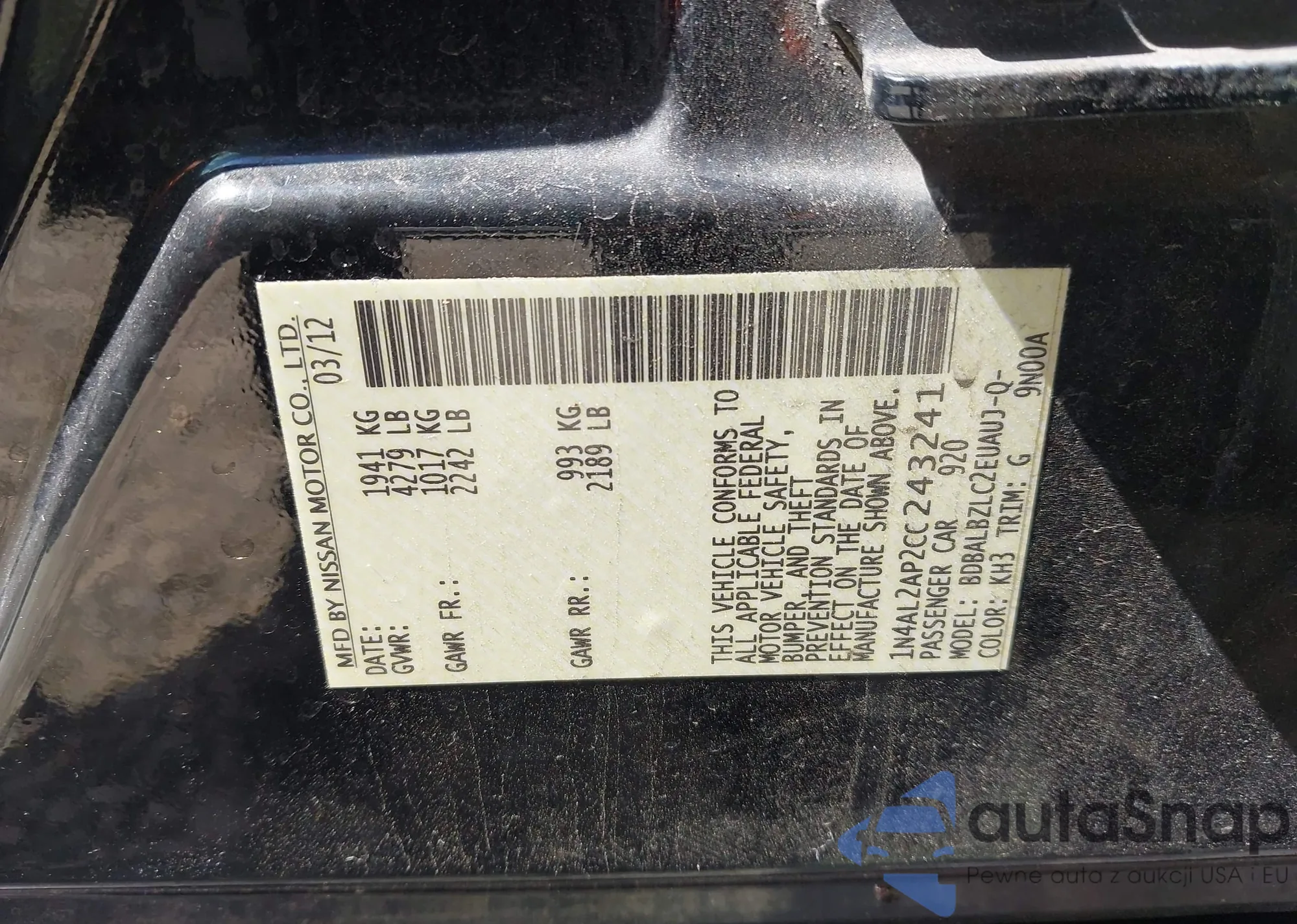 VIN: 1N4AL2AP2CC243241