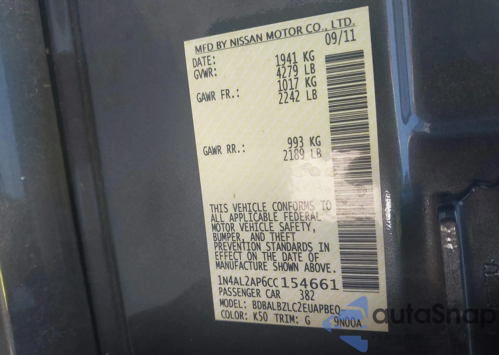 VIN: 1N4AL2AP6CC154661