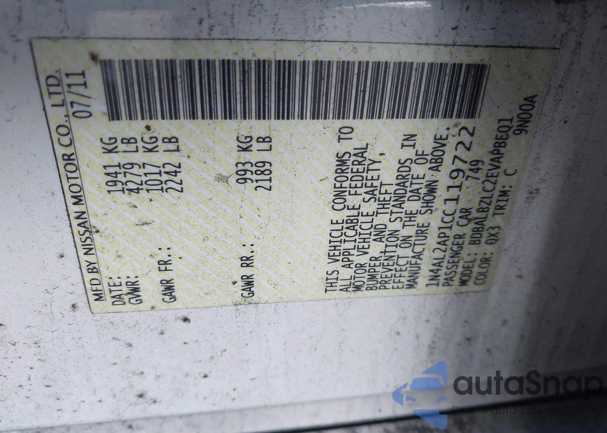 VIN: 1N4AL2AP1CC119722