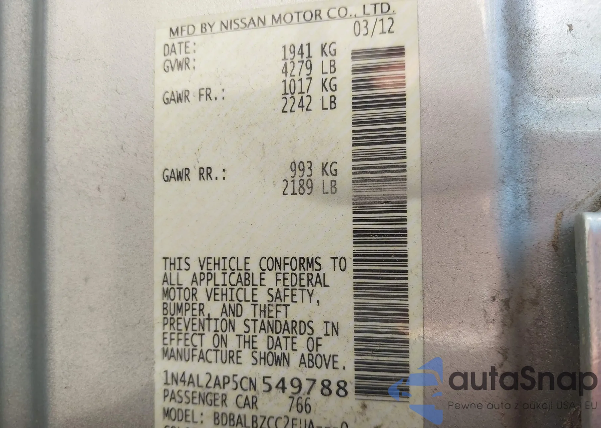 VIN: 1N4AL2AP5CN549788