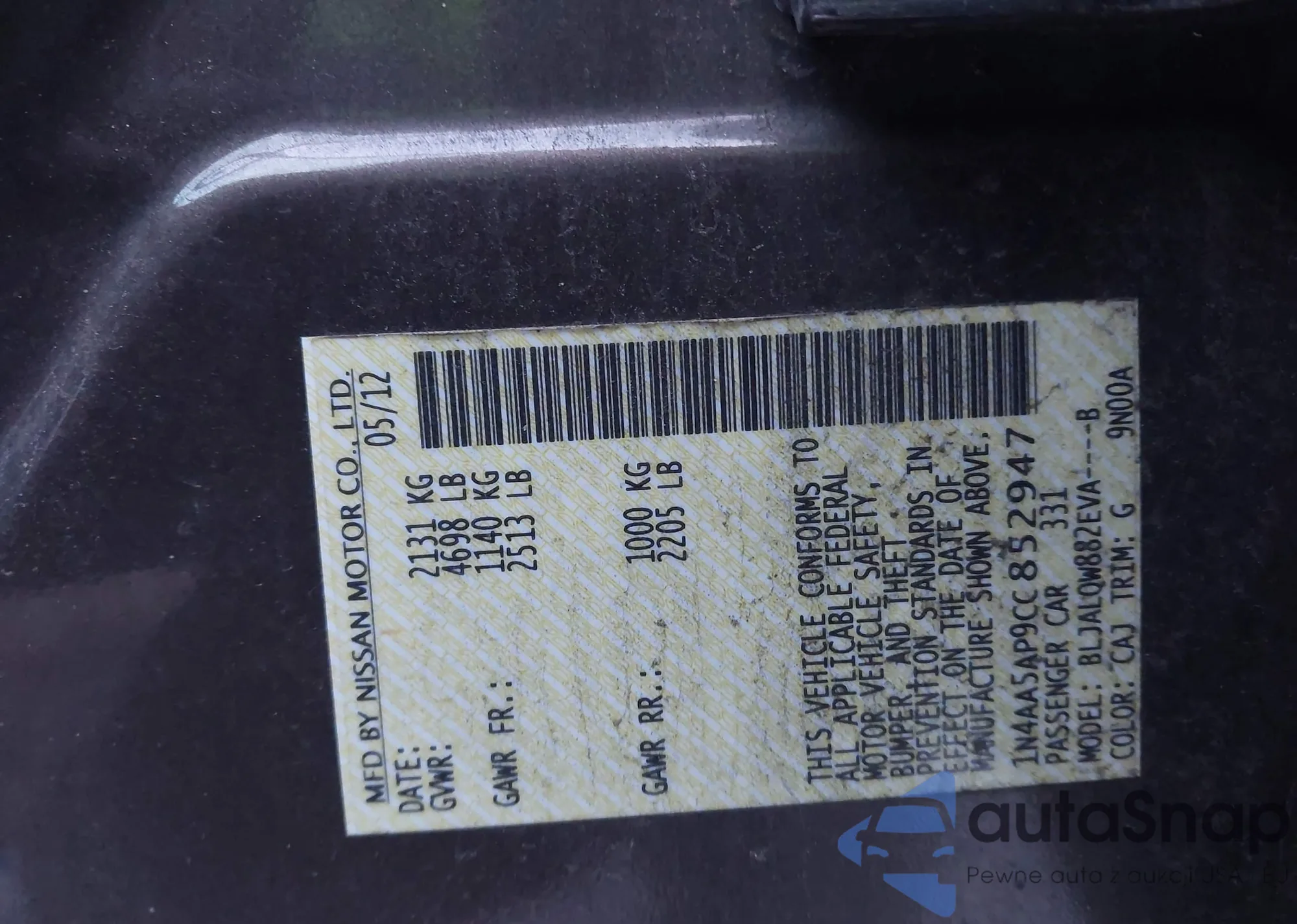 VIN: 1N4AA5AP9CC852947