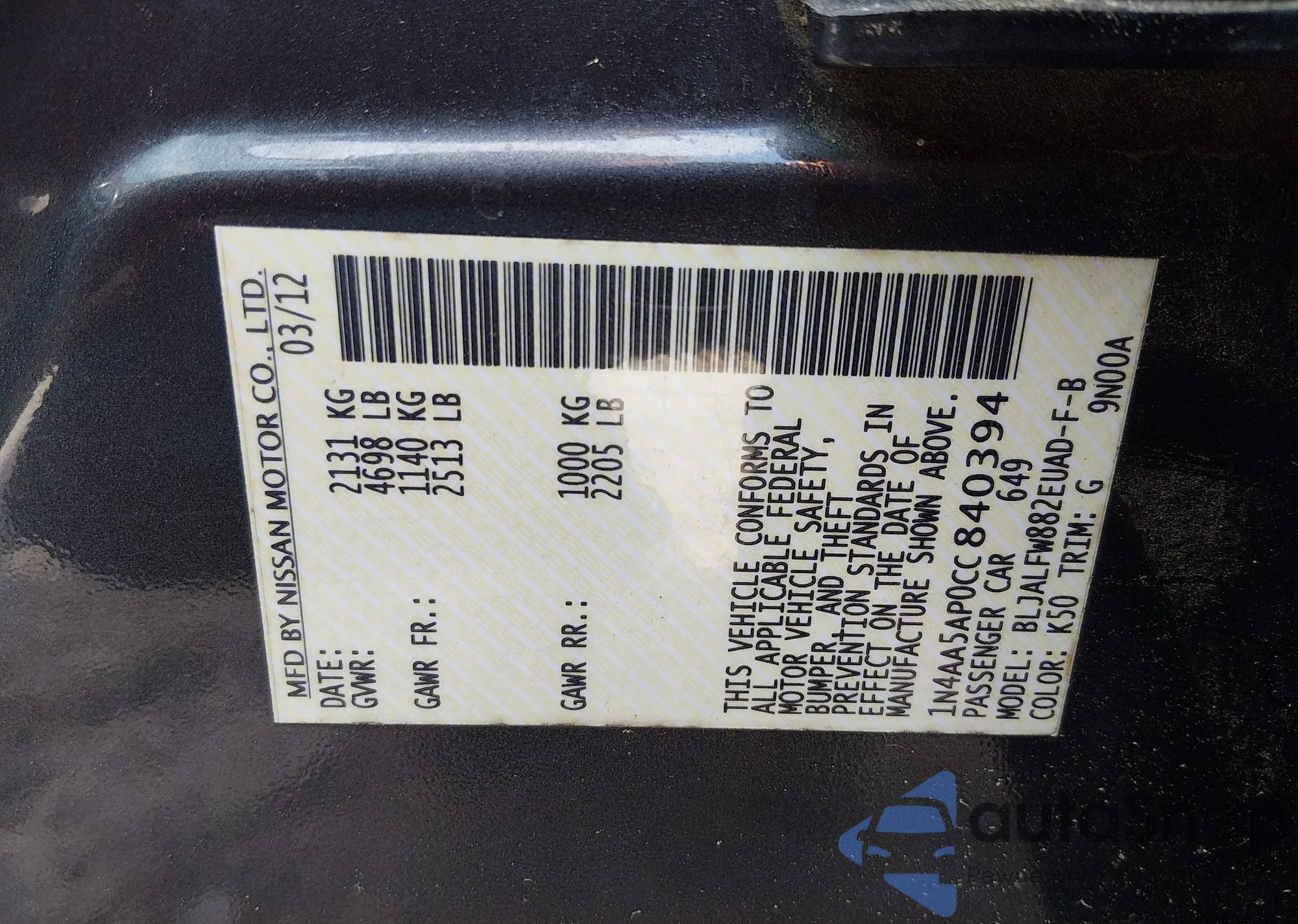VIN: 1N4AA5AP0CC840394