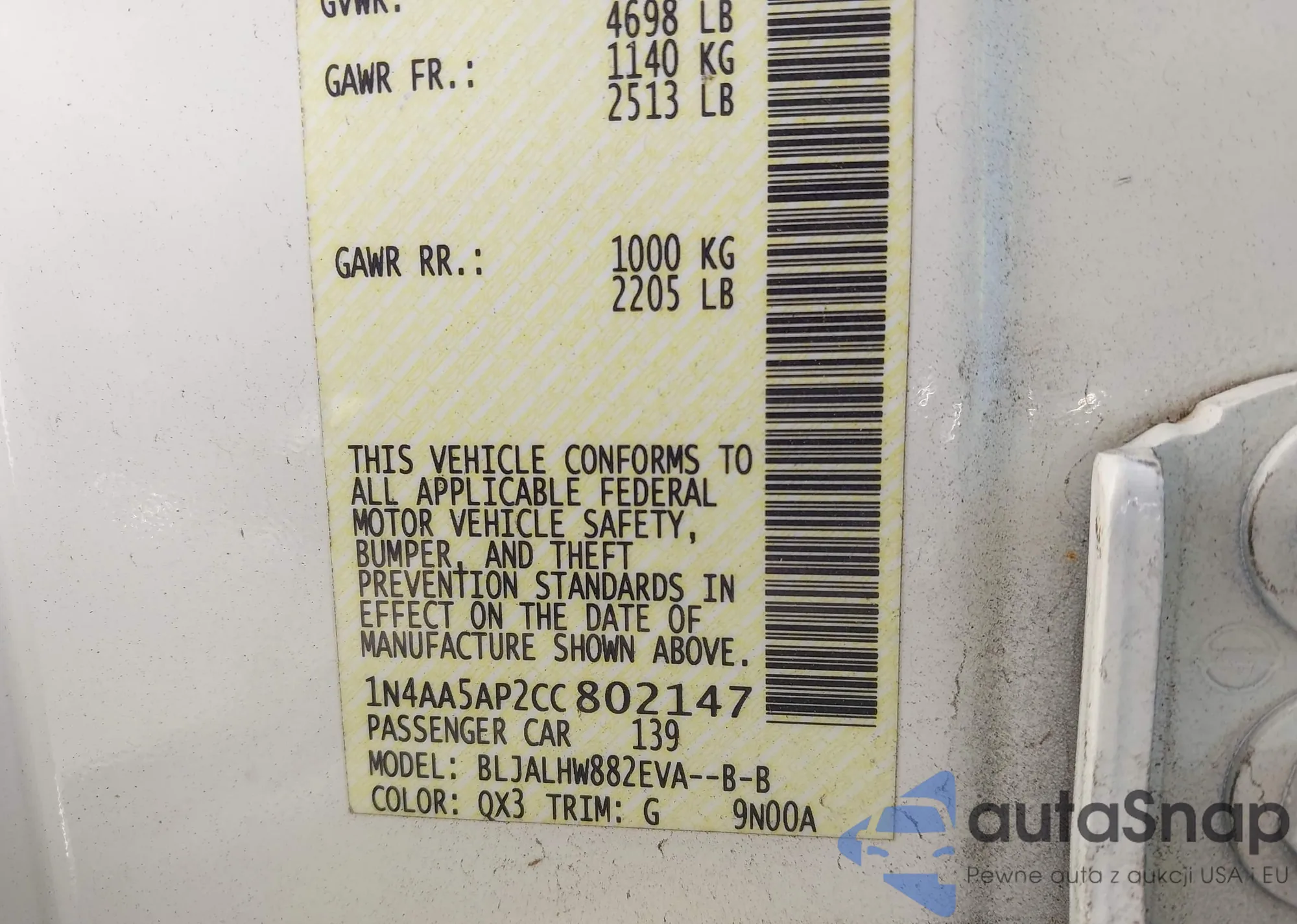 VIN: 1N4AA5AP2CC802147