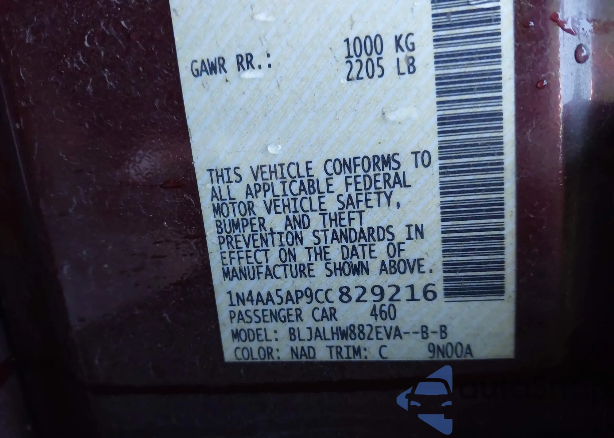 VIN: 1N4AA5AP9CC829216