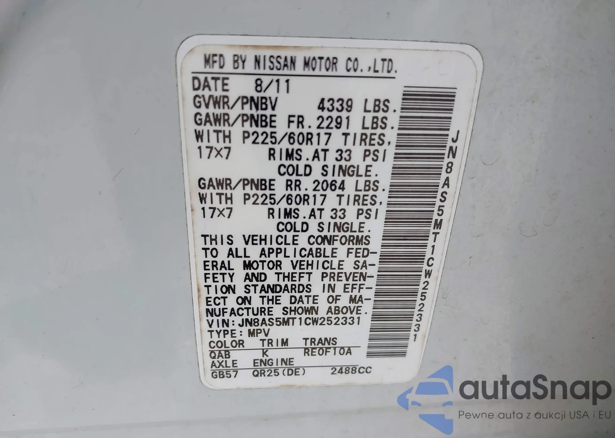 VIN: JN8AS5MT1CW252331