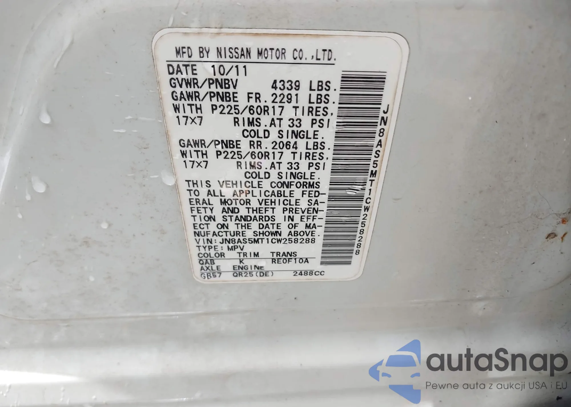 VIN: JN8AS5MT1CW258288