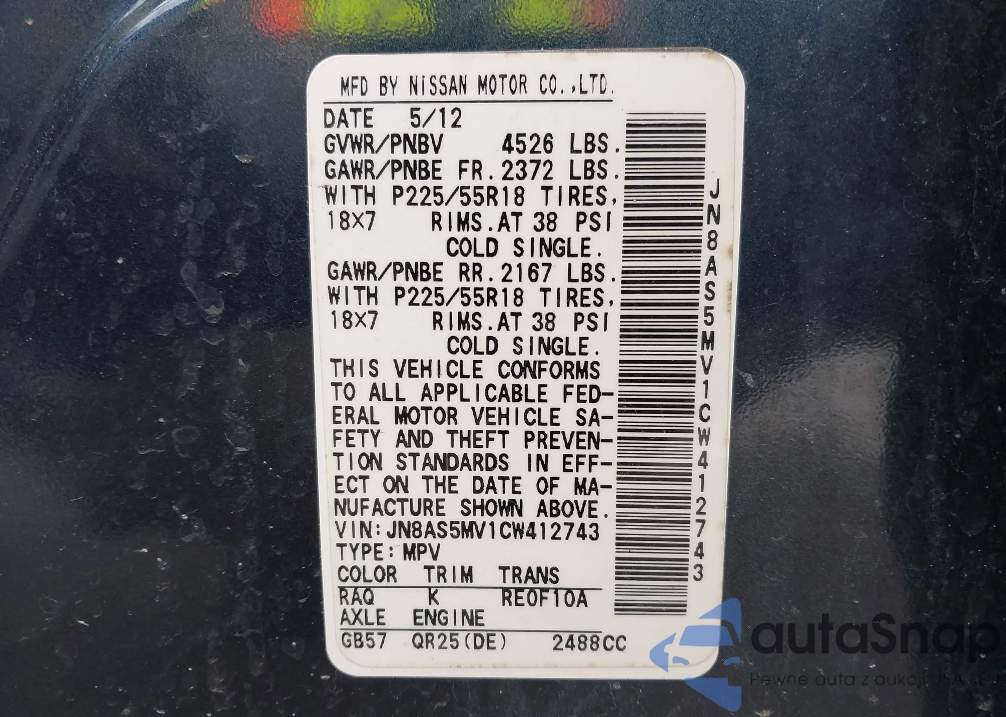 VIN: JN8AS5MV1CW412743