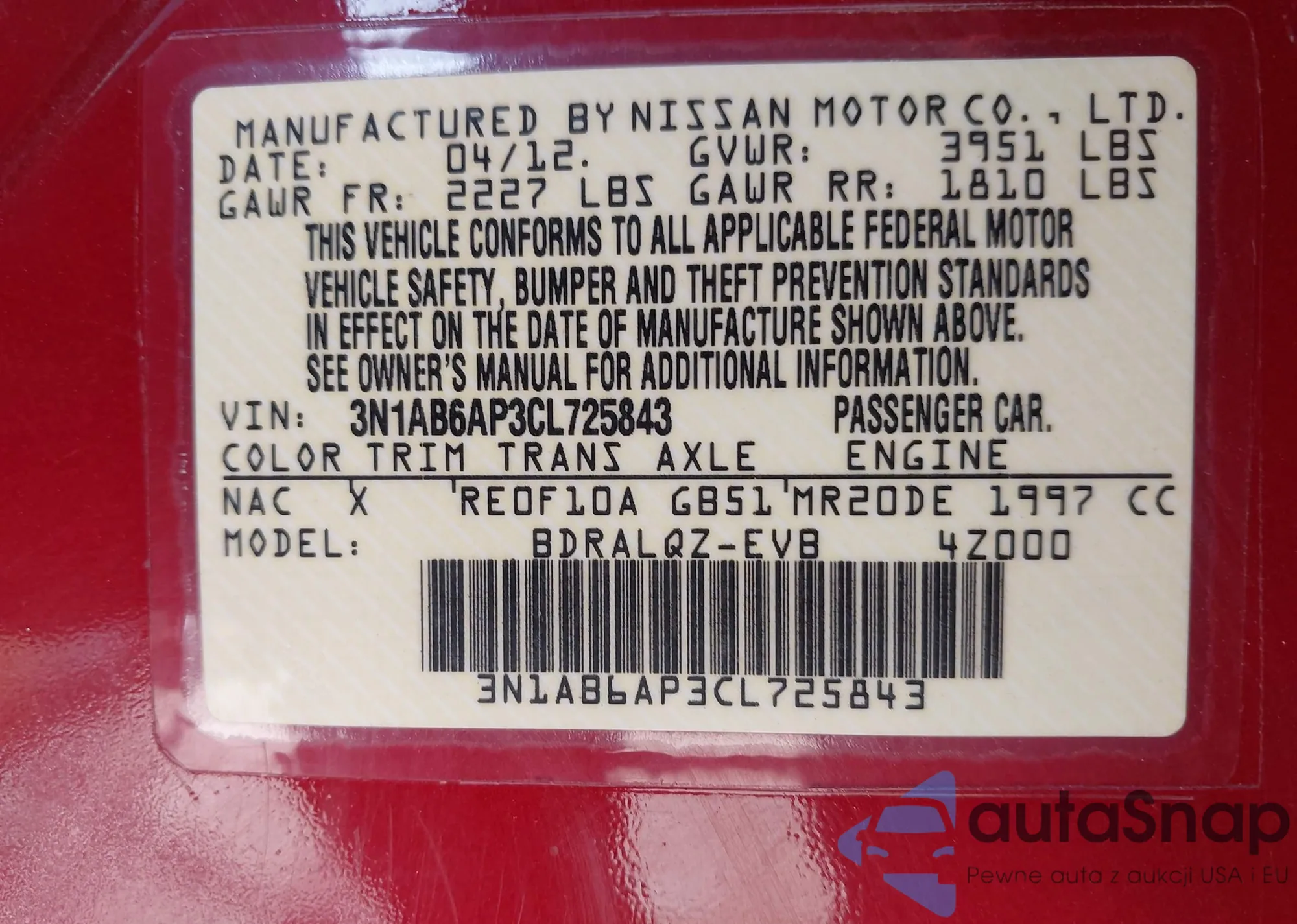 Автомобиль Nissan Sentra 2012 (VIN 3N1AB6AP3CL725843) ранее не участвовал в торгах. Документы чистые, пробег соответствует или ниже среднего по рынку. Продаётся страховой компанией — рекомендуем покупку. Доставка в порт займет около 6–8 недель.