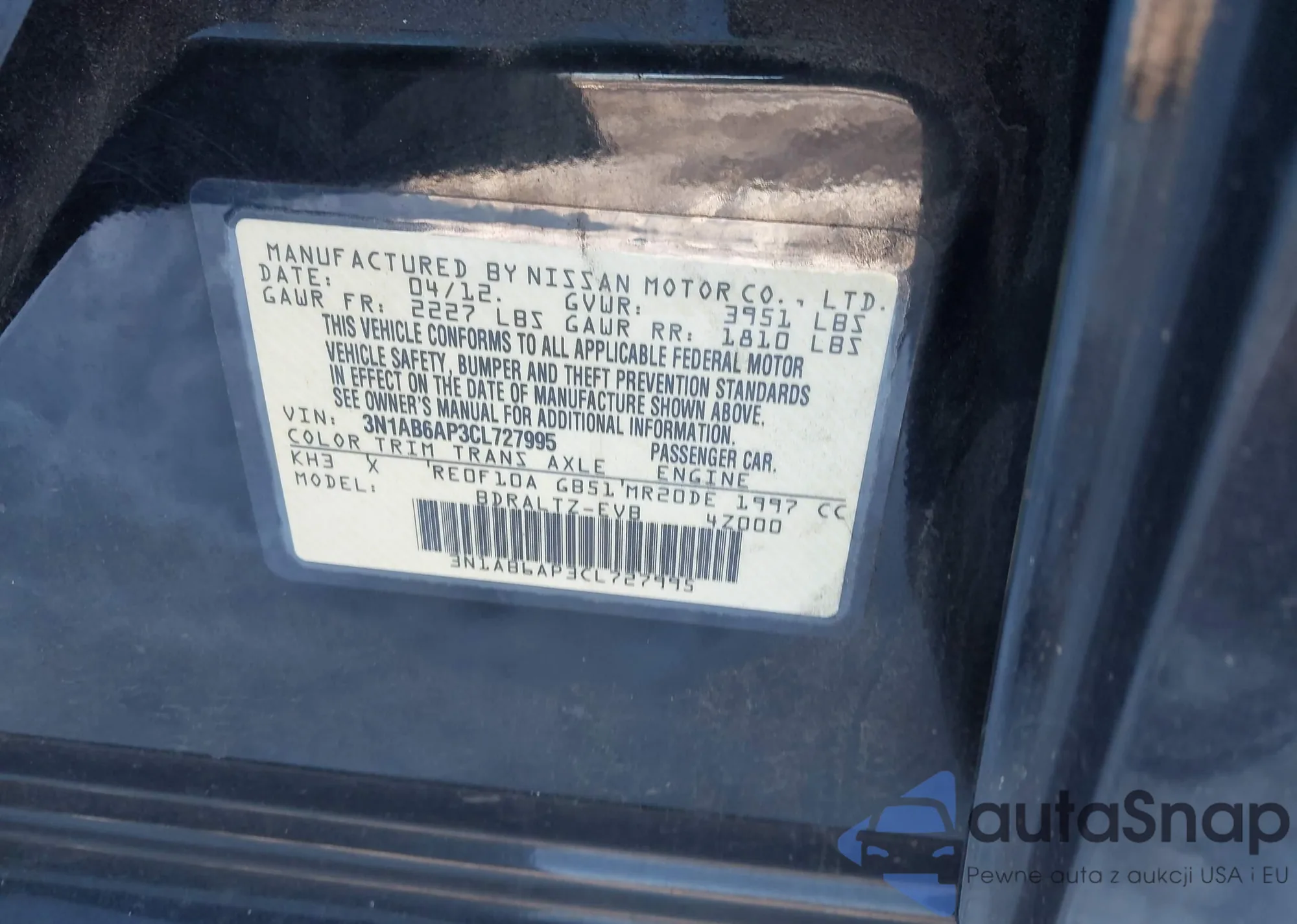 VIN: 3N1AB6AP3CL727995