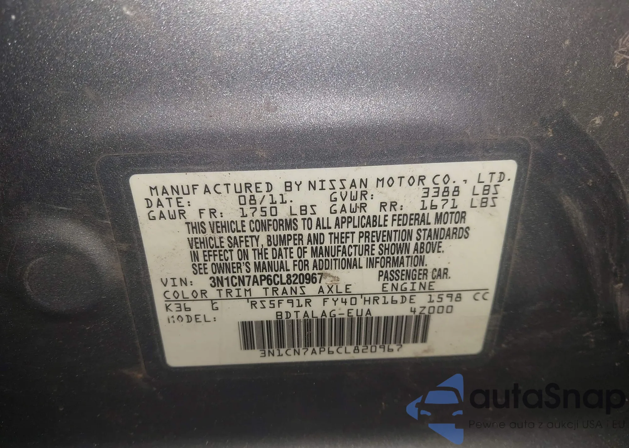 VIN: 3N1CN7AP6CL820967