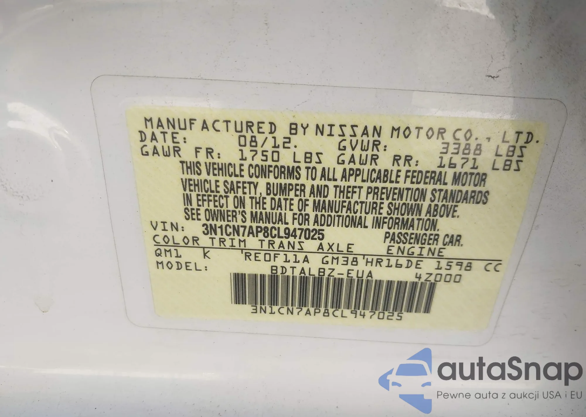 VIN: 3N1CN7AP8CL947025