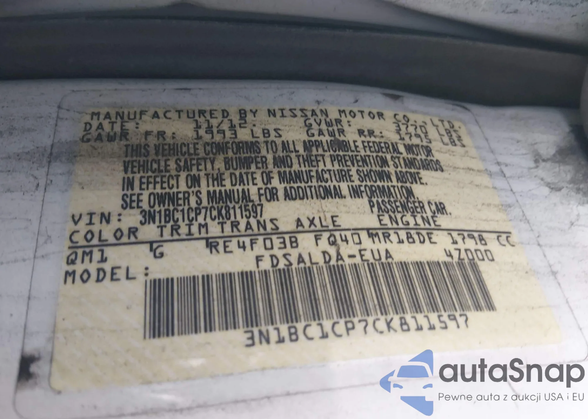 VIN: 3N1BC1CP7CK811597