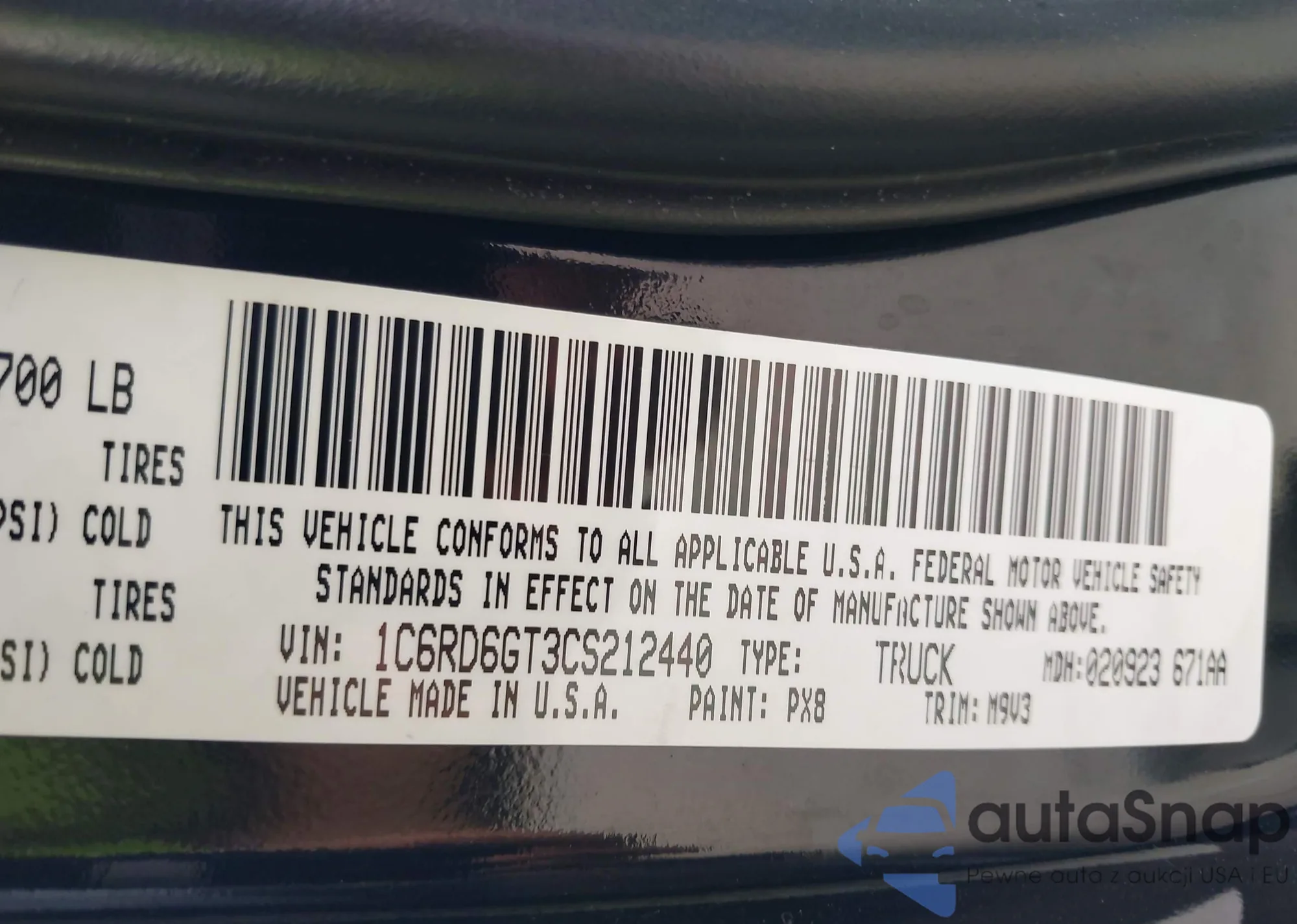 • VIN: 1C6RD6GT3CS212440