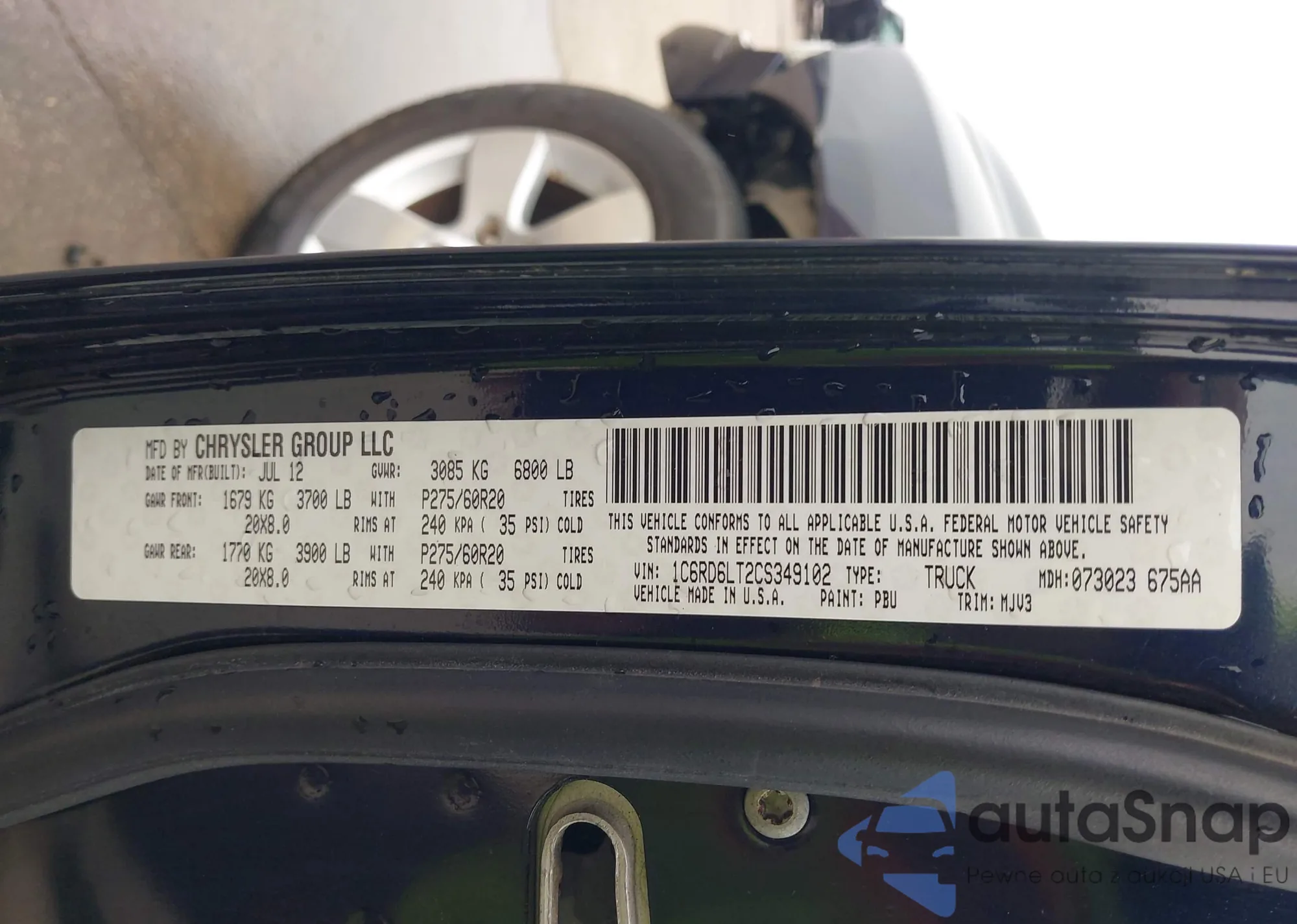VIN: 1C6RD6LT2CS349102