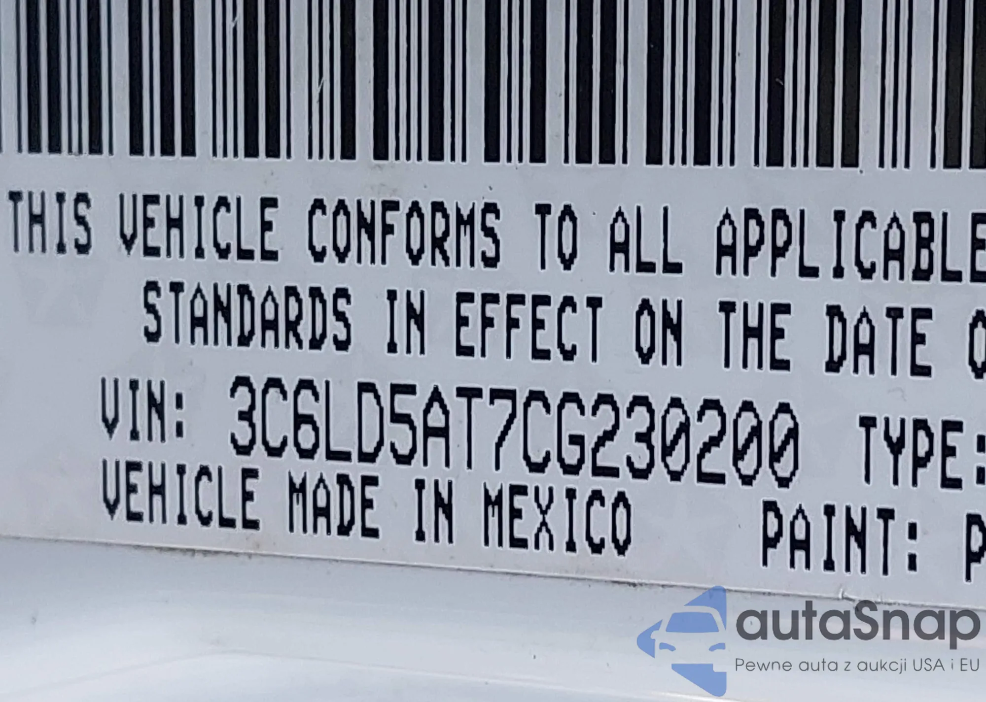 • VIN: 3C6LD5AT7CG230200