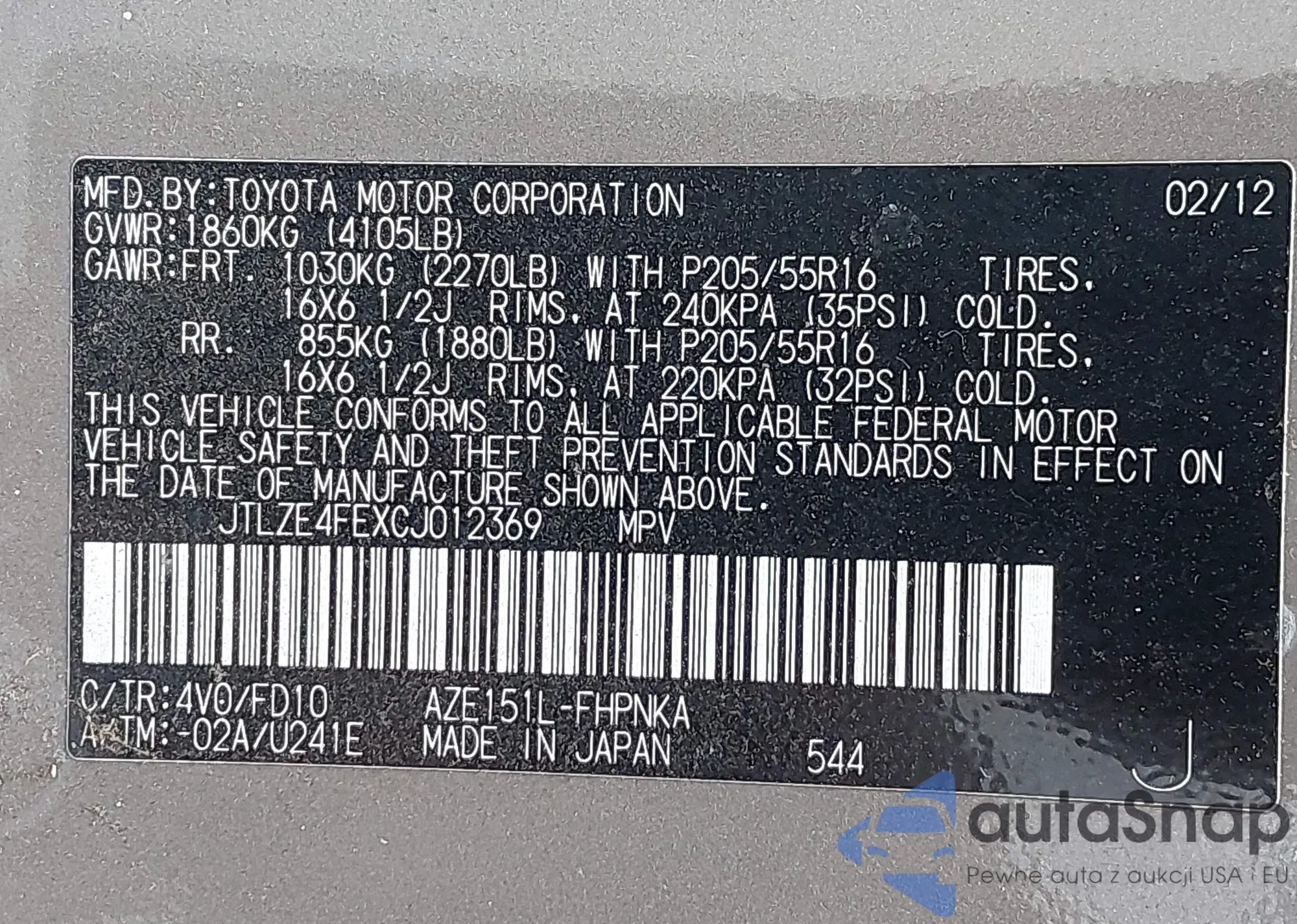 VIN: JTLZE4FEXCJ012369