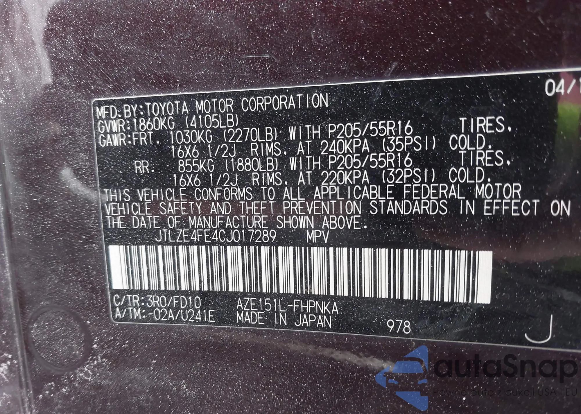JTLZE4FE4CJ017289 IAAI